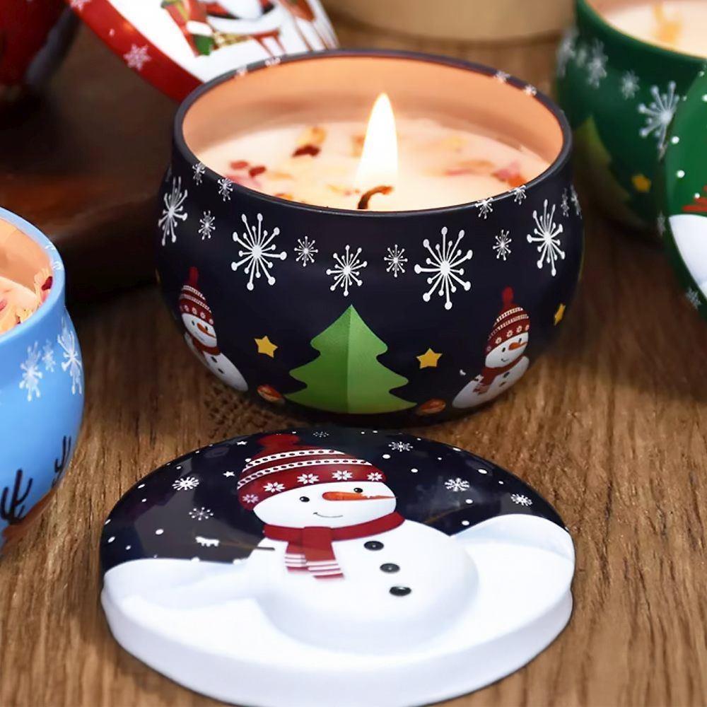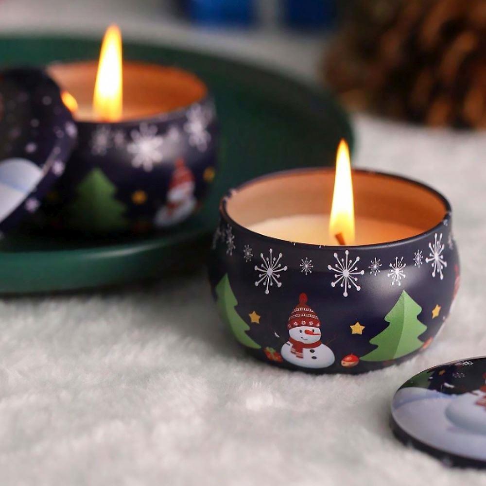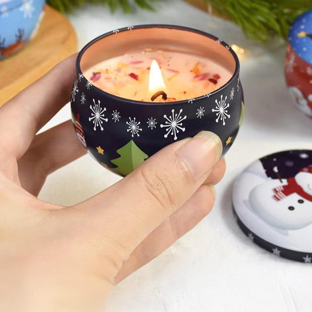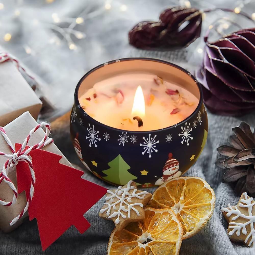 Świąteczna świeca zapachowa w metalowej obudowie