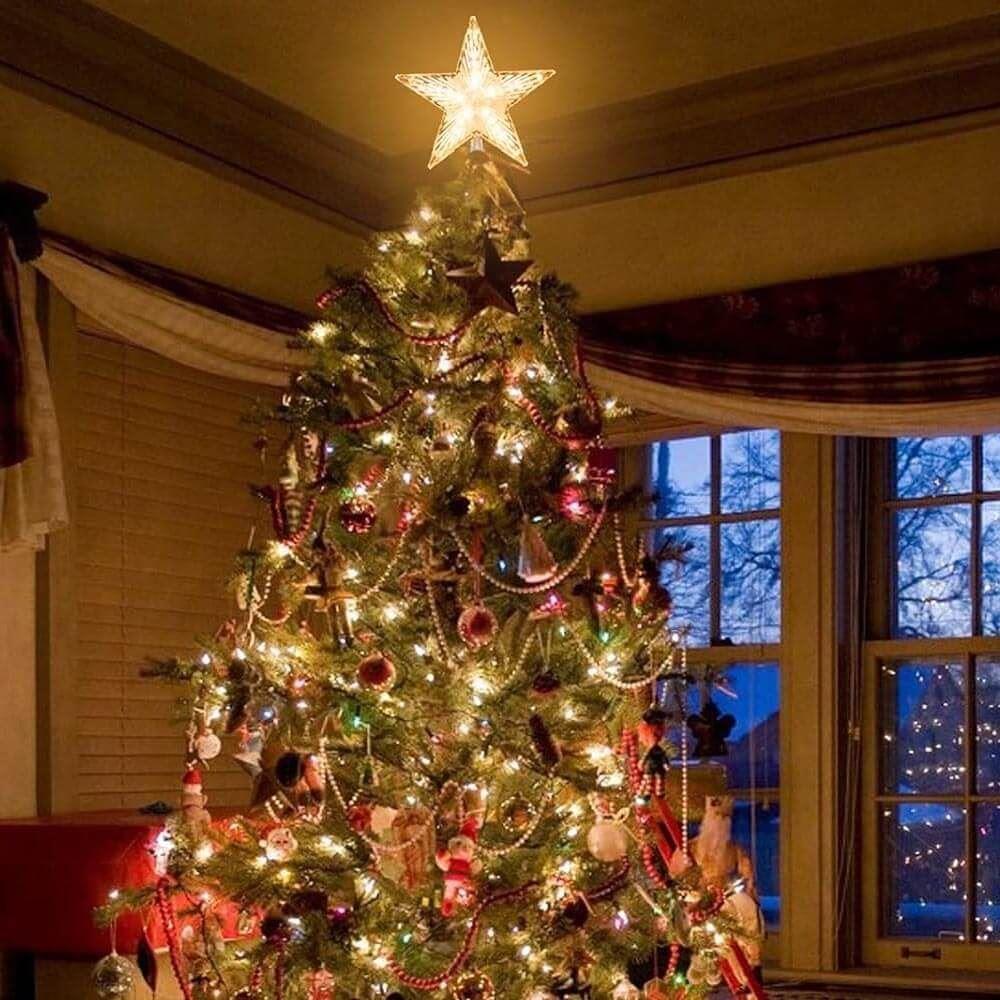 Świąteczna świecąca gwiazda na choinkę - ciepłe światło