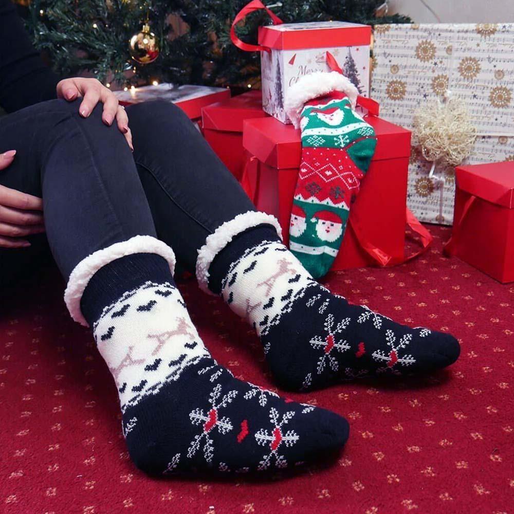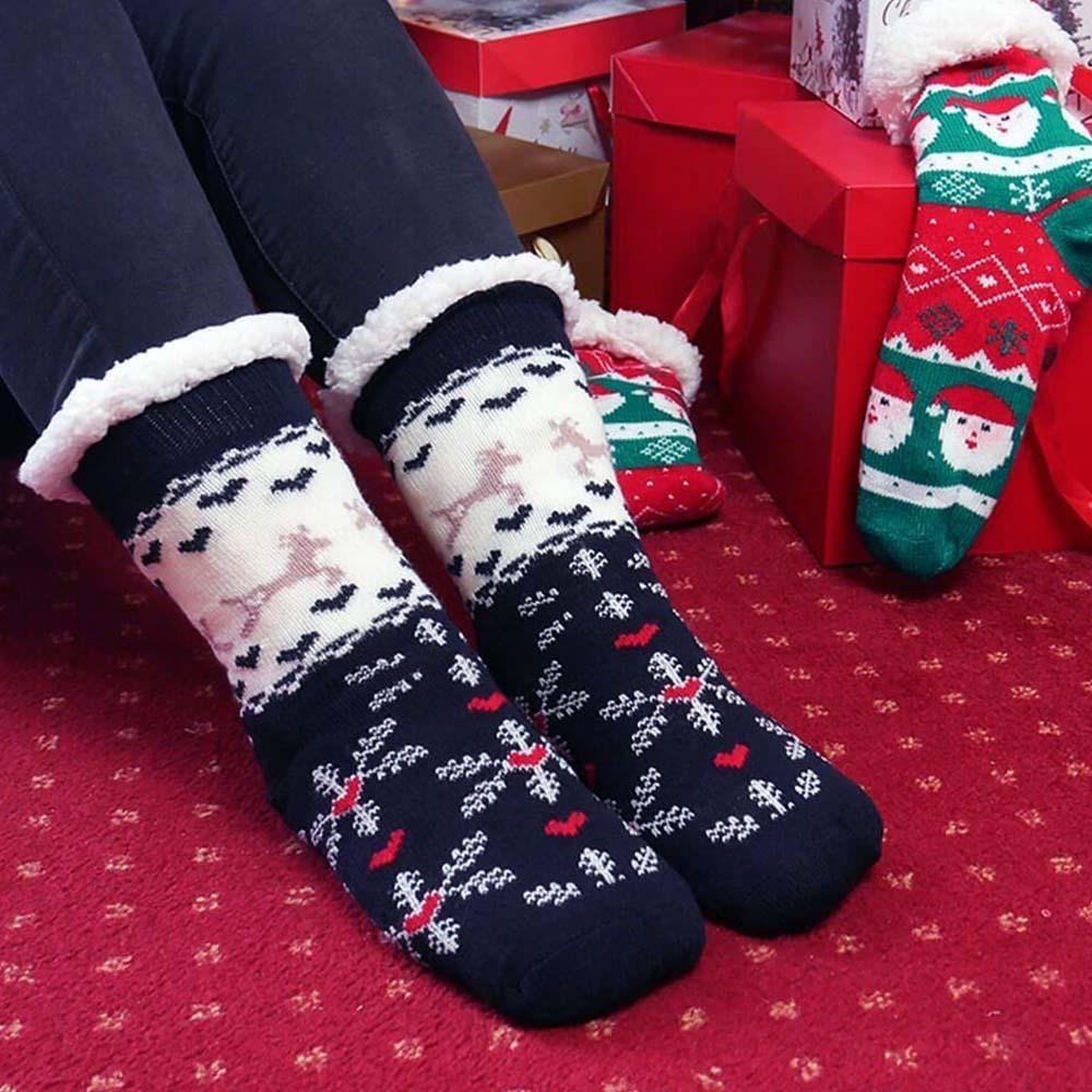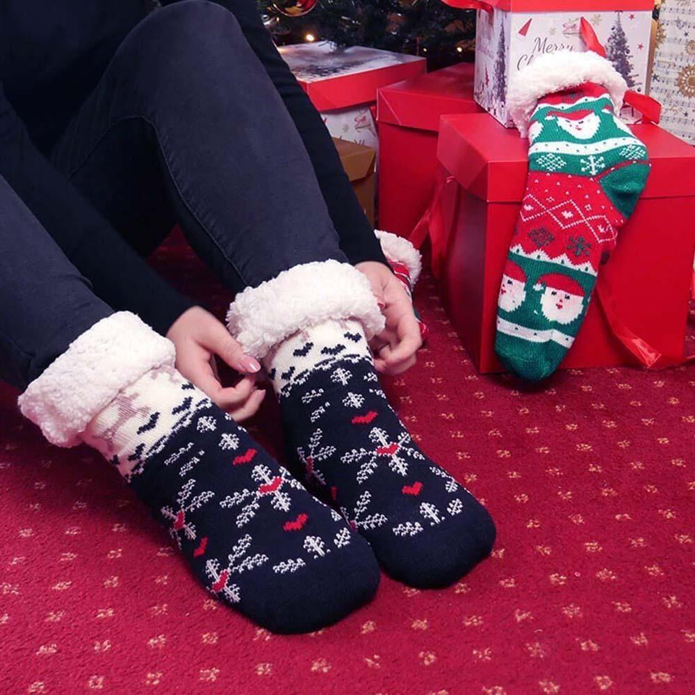 Świąteczne ciepłe skarpetki z futerkiem - czas zimowy