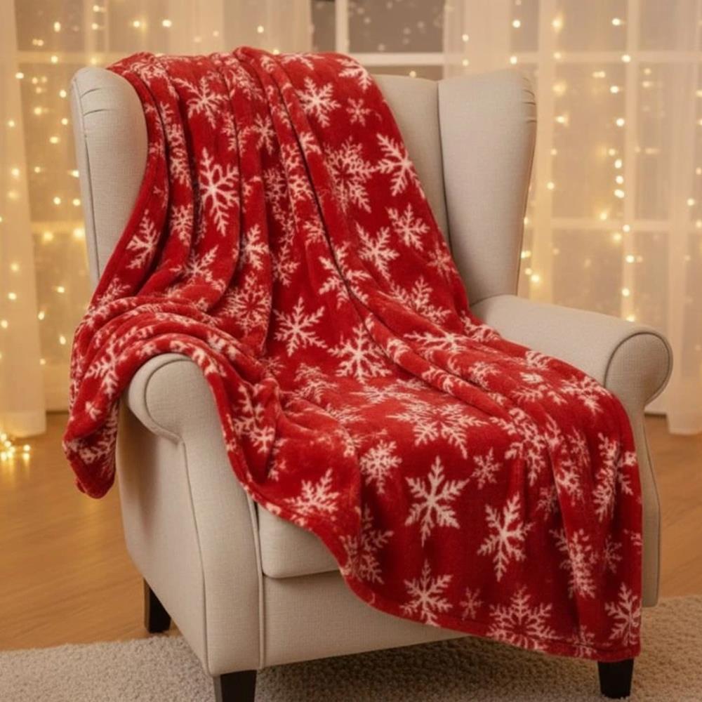 Świąteczny koc z mikropolaru w czerwonym kolorze wniesie do Twojego domu prawdziwy świąteczny nastrój. Zdobiony śnieżynkami, sprawdzi się jako dekoracja oraz jako towarzysz chwil relaksu i odpoczynku.