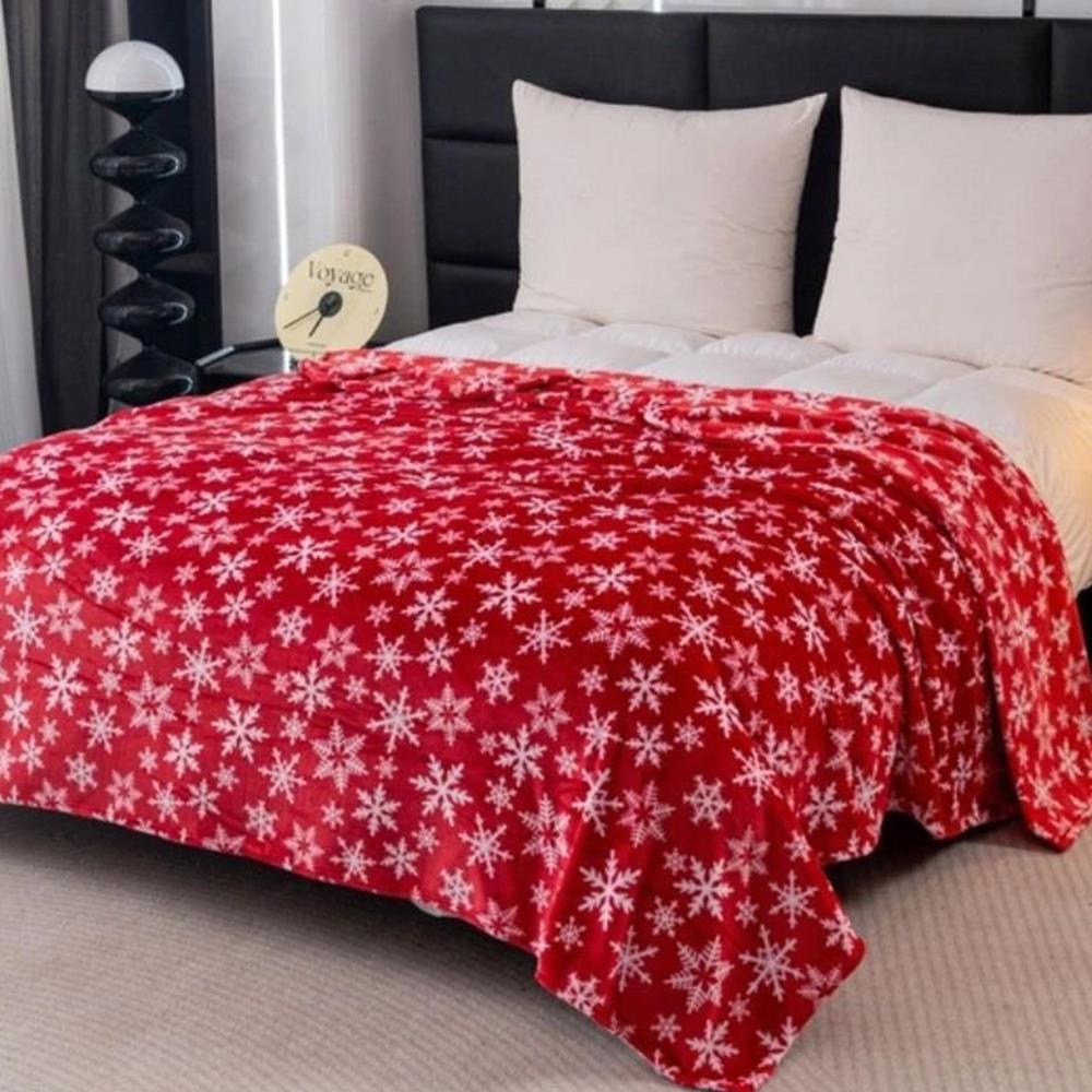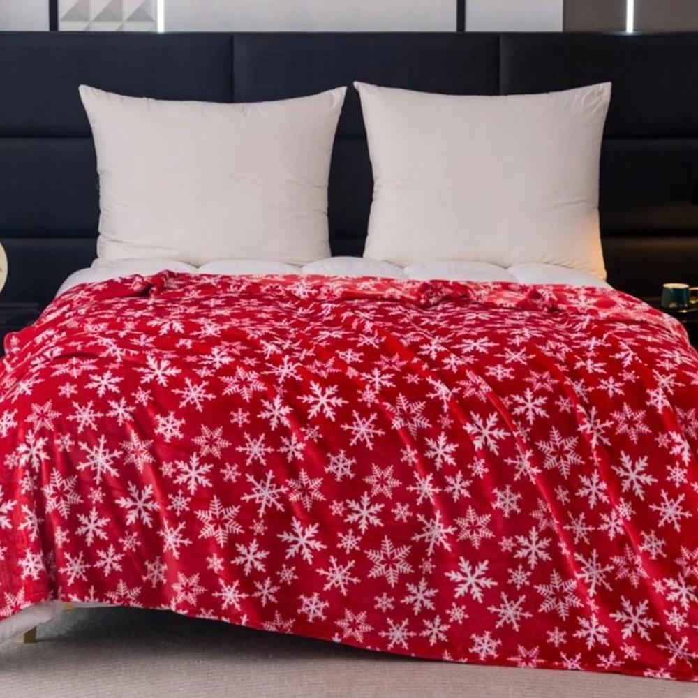 Świąteczny koc z mikrofibry w płatki śniegu 160 x 200 cm
