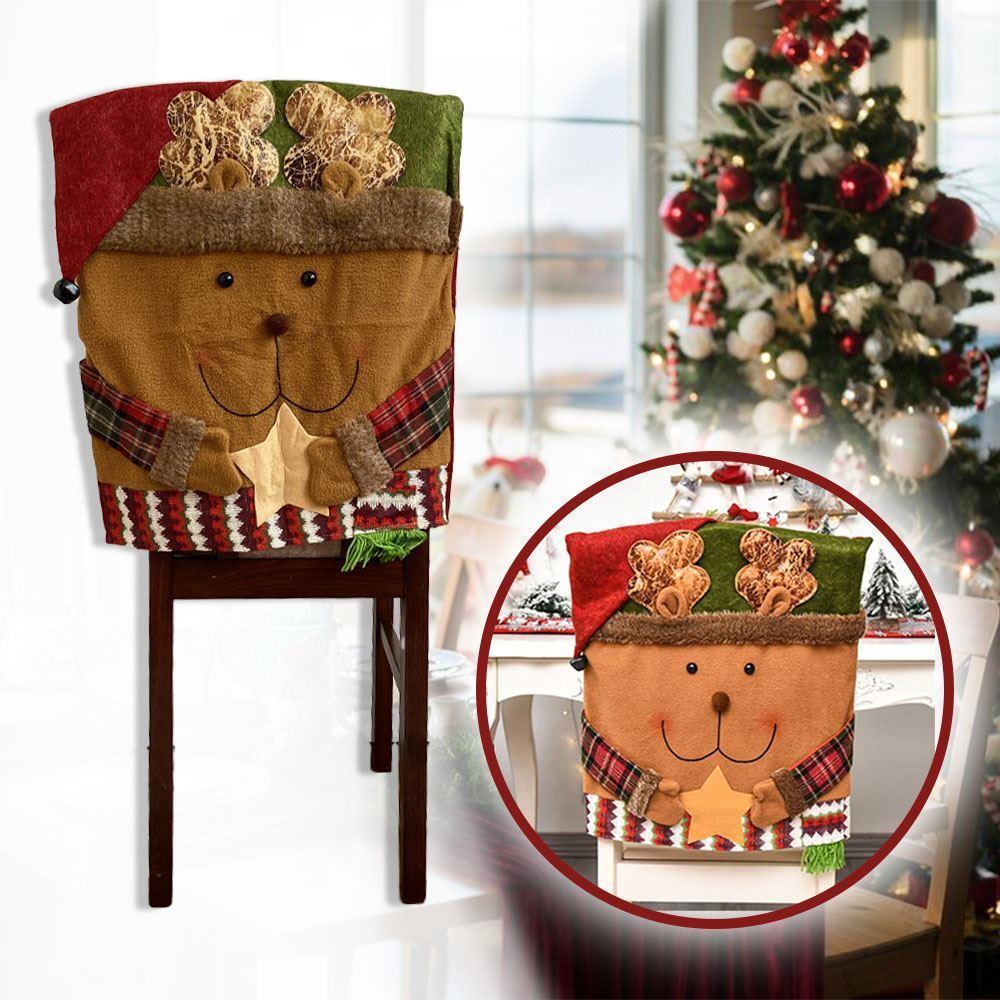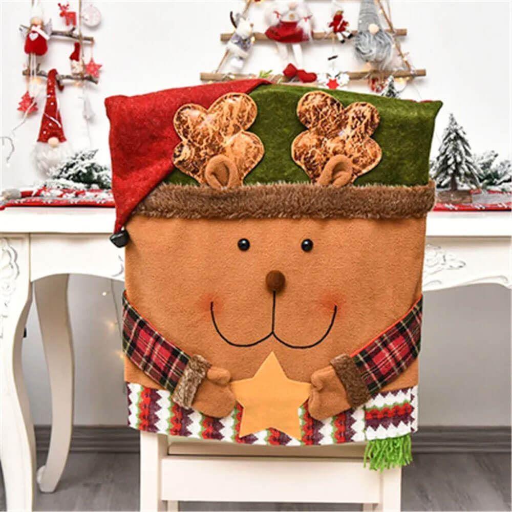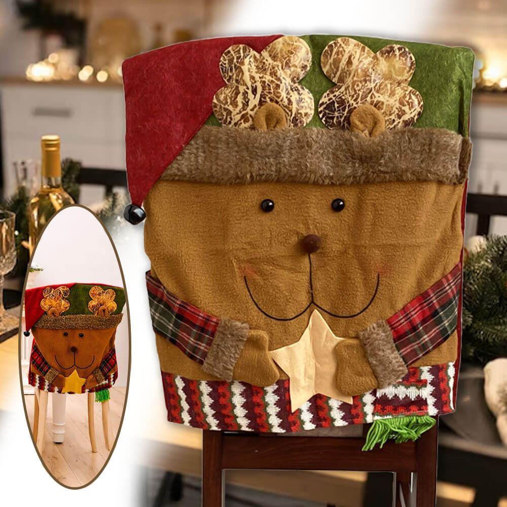 Świąteczny pokrowiec na krzesło - miś w czapce renifera