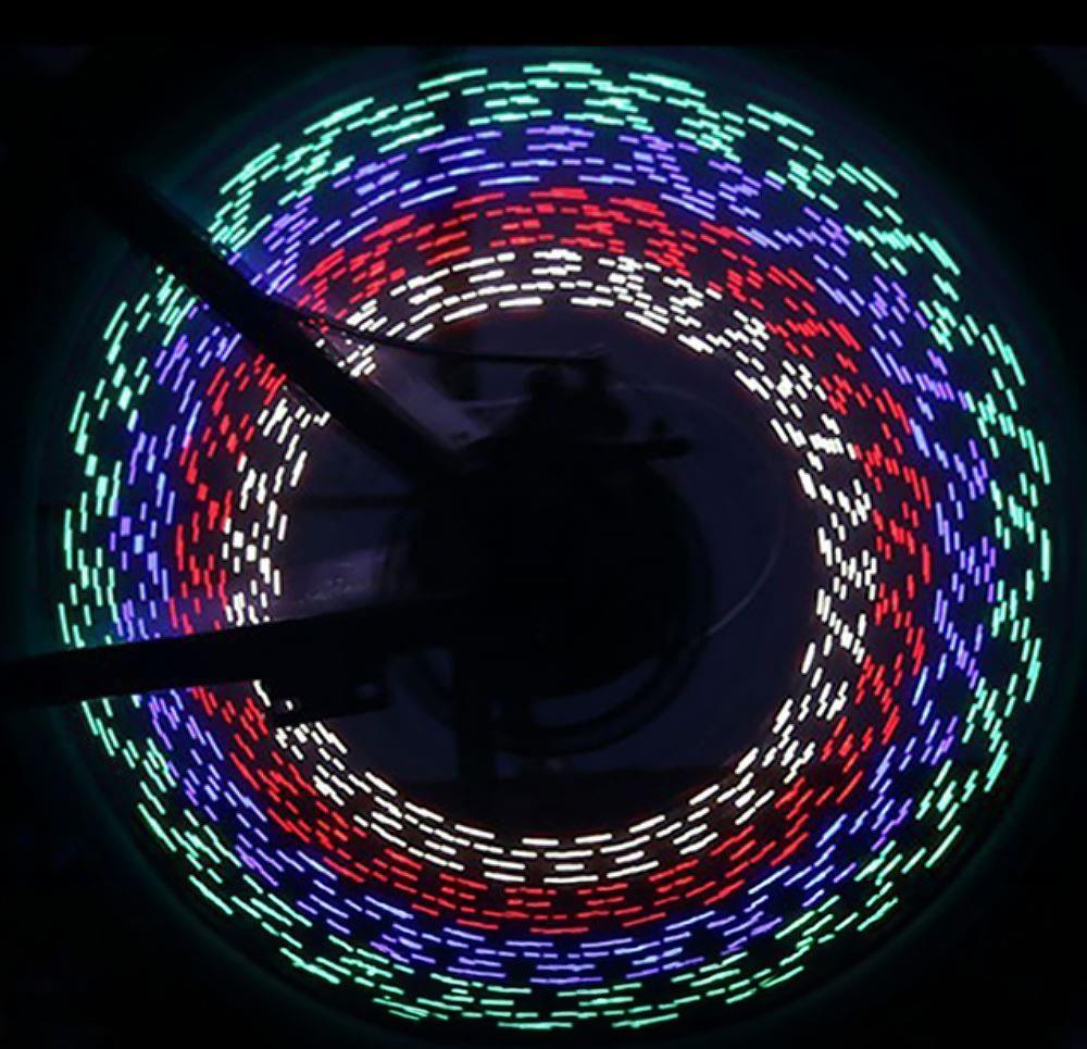 Z tym oświetleniem LED do szprych roweru poczujesz się znacznie pewniej. Posiada 32 diody LED, które aktywują się nocą. Migają kolorem niebieskim, czerwonym, zielonym oraz żółtym. Dzięki temu oświetleniu zwrócisz uwagę innych uczestników ruchu, że również jesteś na drodze, i nikt Cię nie przeoczy!