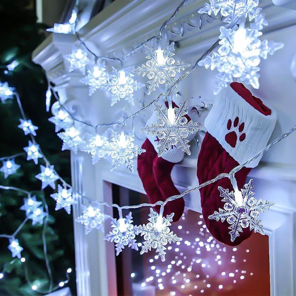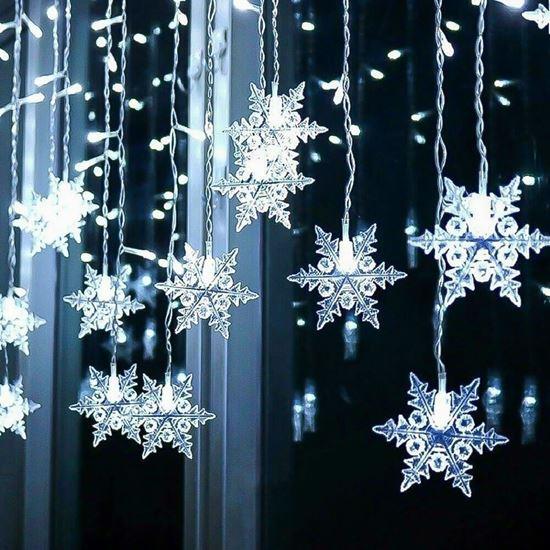 Obrazek z Świetlny łańcuch wiszący z motywem śnieżnych płatków - zimne światło