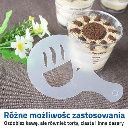 Szablony do dekoracji kawy całkowicie cię zachwycą! Piękne dekoracje możesz stworzyć w domu lub nawet w biurze, sprawiając radość koledze lub koleżance. Szablony nadają się do kaw, takich jak latte, cappuccino, ogólnie tam, gdzie jest spienione mleko. Gdy kawa jest już gotowa, posyp przez szablon cynamonem, a na kawie natychmiast pojawi się wybrany obrazek. Szablony po użyciu wystarczy opłukać wodą.