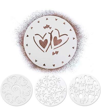 Szablon wystarczy przyłożyć do tortu lub innego deseru i posypać cukrem lub kakao. W zestawie otrzymasz 4 różne szablony, a wszystkie są wykonane z wysokiej jakości PVC. Są elastyczne i po użyciu łatwo je umyć.