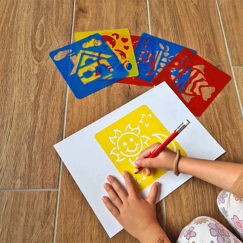 Odkryj świat tworzenia z tym zestawem 6 kolorowych szablonów do malowania! Dzieci łatwo i z przyjemnością narysują przy ich użyciu pojazdy lub zwierzątka - do wyboru różne motywy. Wystarczy położyć szablon na papierze, odrysować kształt i pokolorować – a oryginalny obrazek jest gotowy.