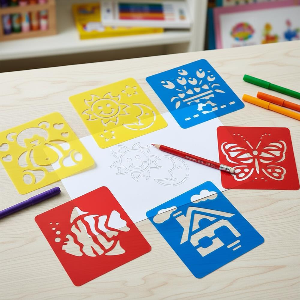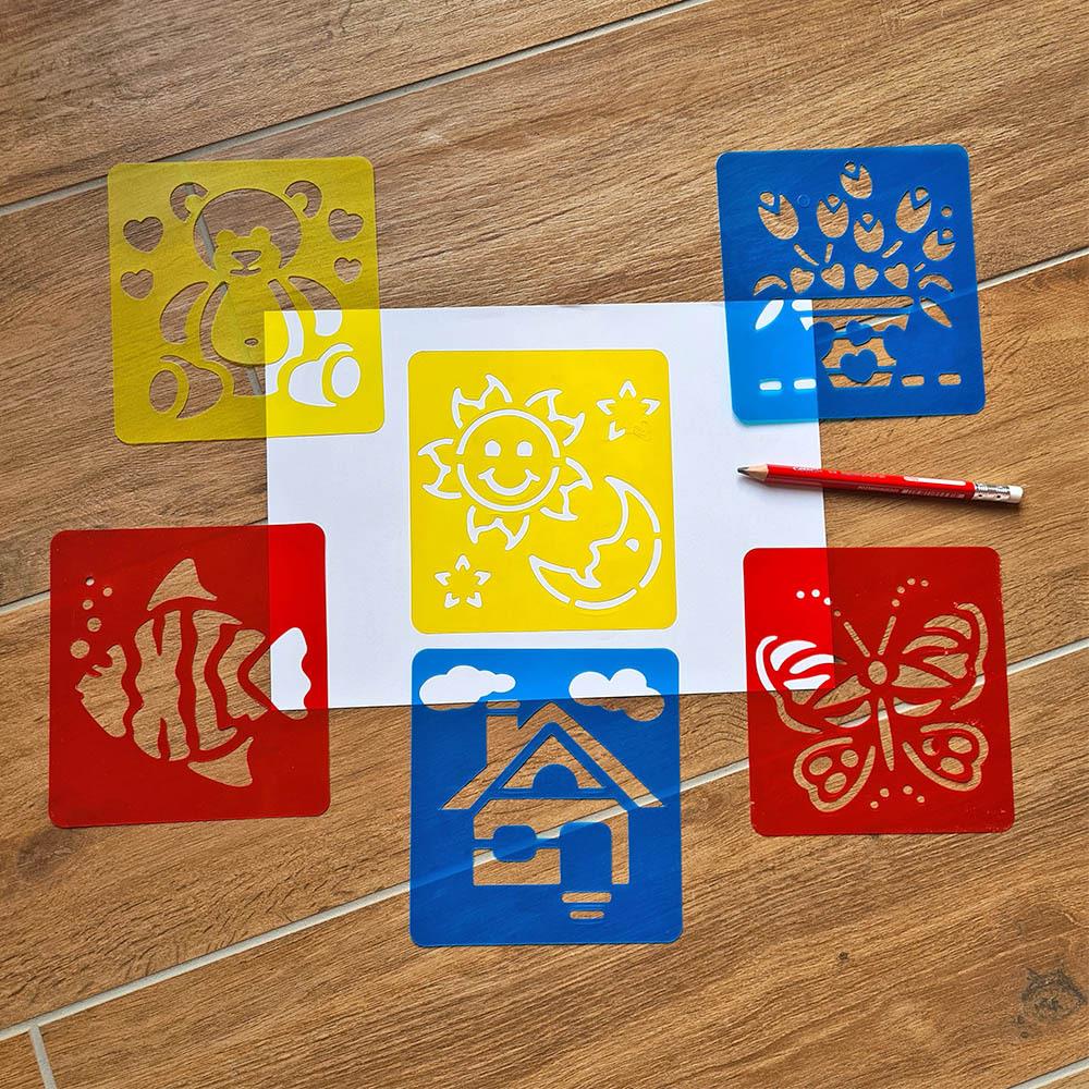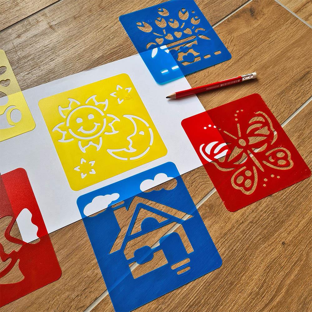 Dzięki solidnemu materiałowi szablony wytrzymują wielokrotne użycie i są idealne zarówno do domowego tworzenia, jak i do przedszkoli czy zajęć plastycznych. Świetny sposób na wspieranie dziecięcej fantazji i motoryki! Do kolejnego użycia wystarczy je tylko opłukać wodą.