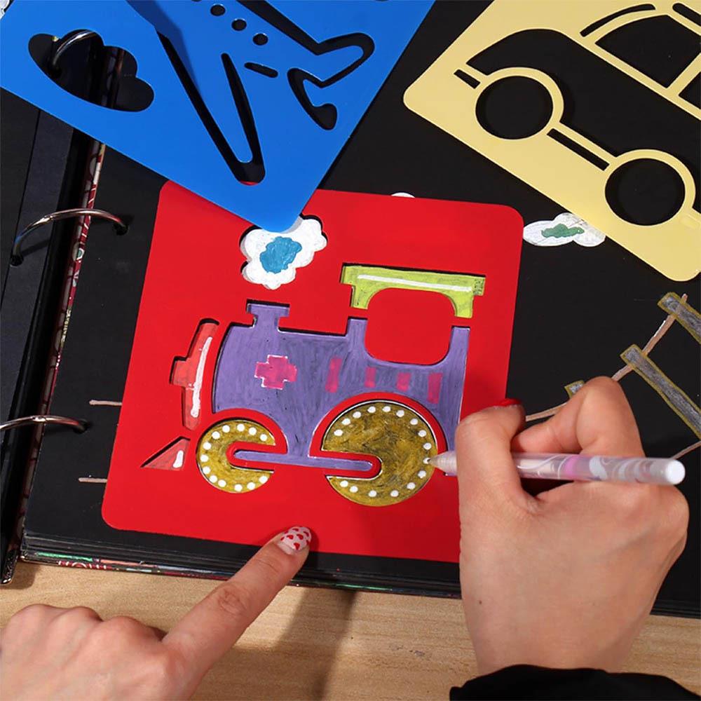 Odkryj świat tworzenia z tym zestawem 6 kolorowych szablonów do malowania! Dzieci łatwo i z przyjemnością narysują przy ich użyciu pojazdy lub zwierzątka - do wyboru różne motywy. Wystarczy położyć szablon na papierze, odrysować kształt i pokolorować – a oryginalny obrazek jest gotowy.