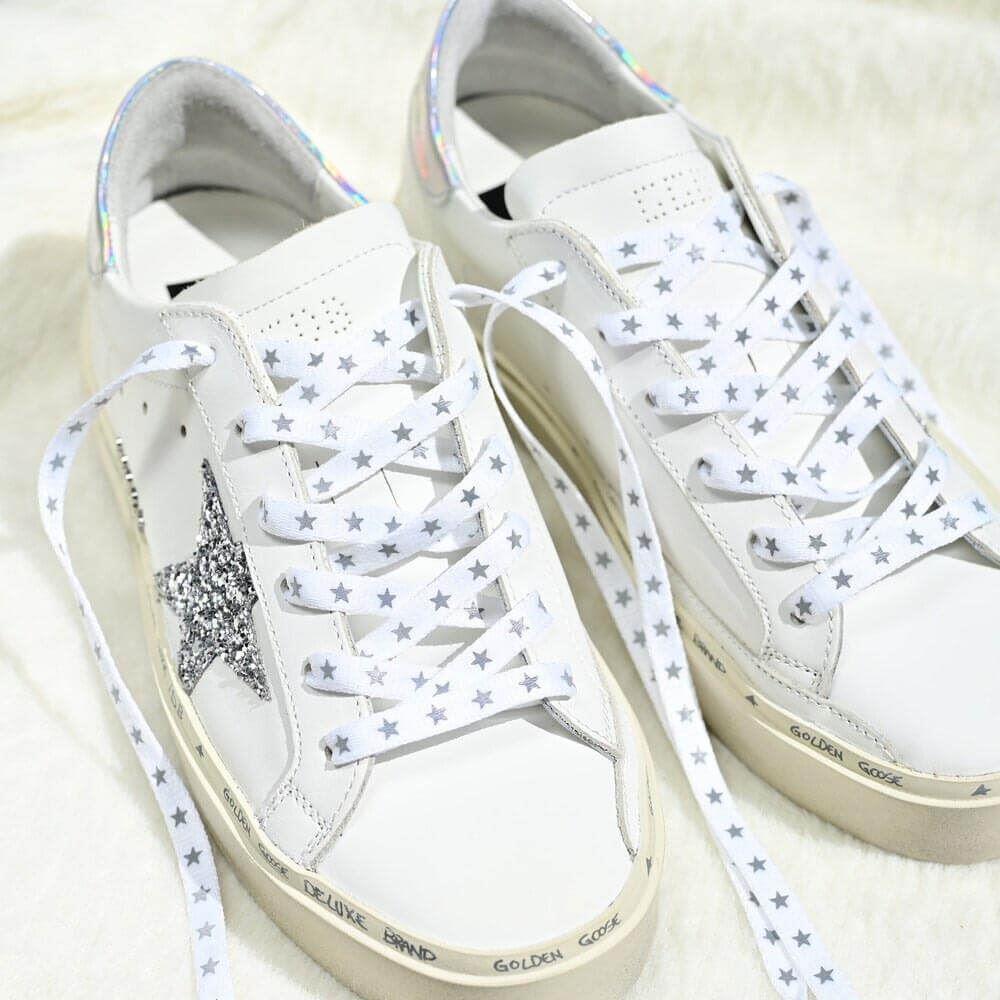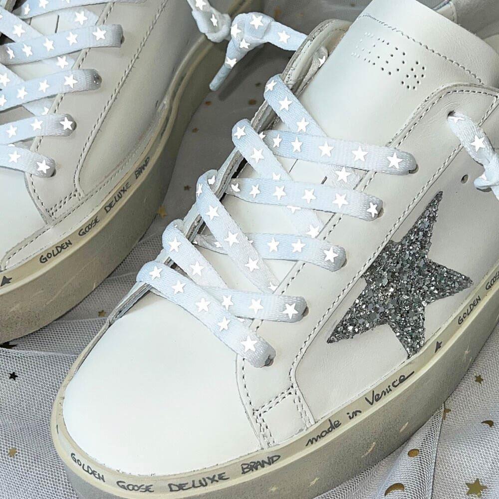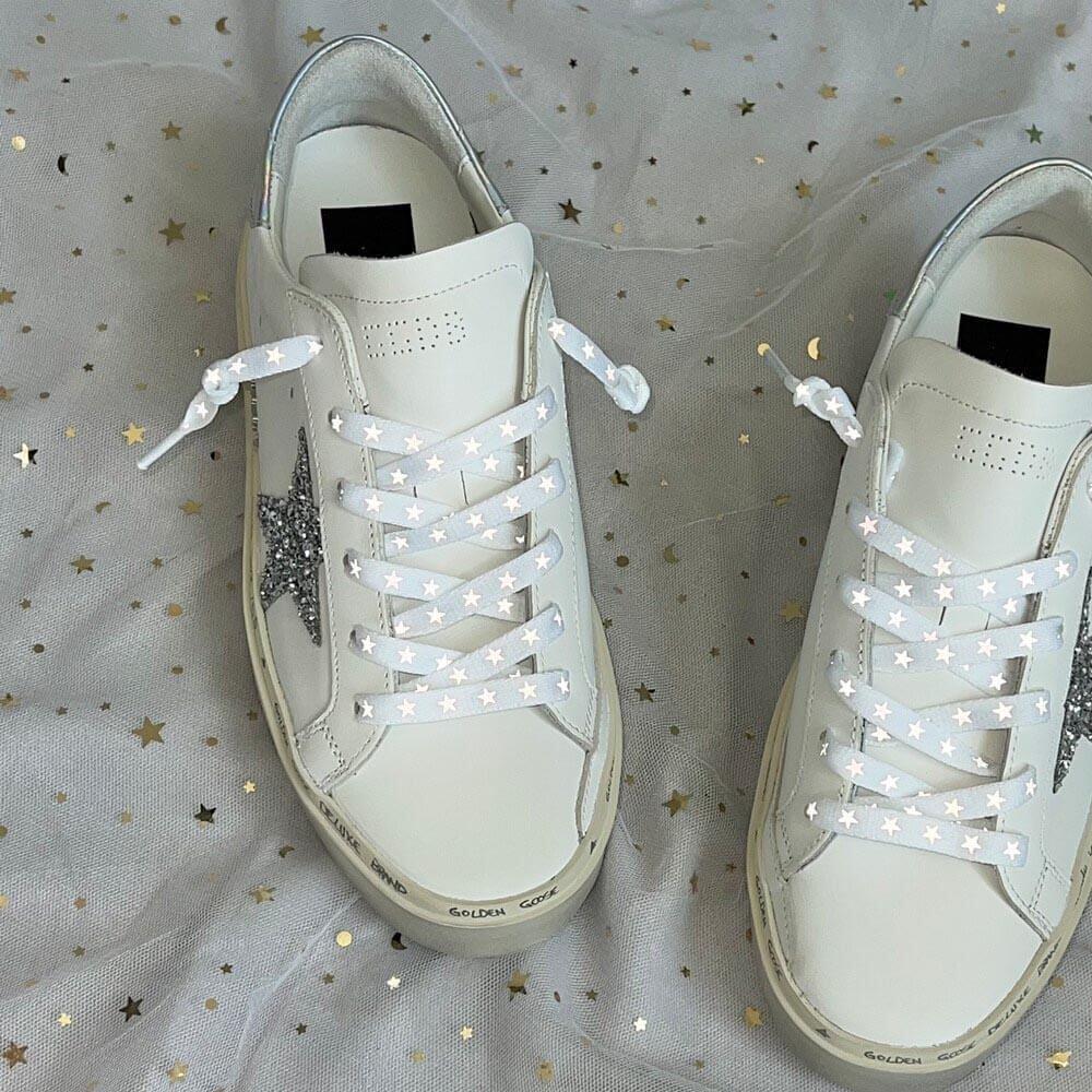 Sznurówki z odblaskowymi gwiazdkami - białe