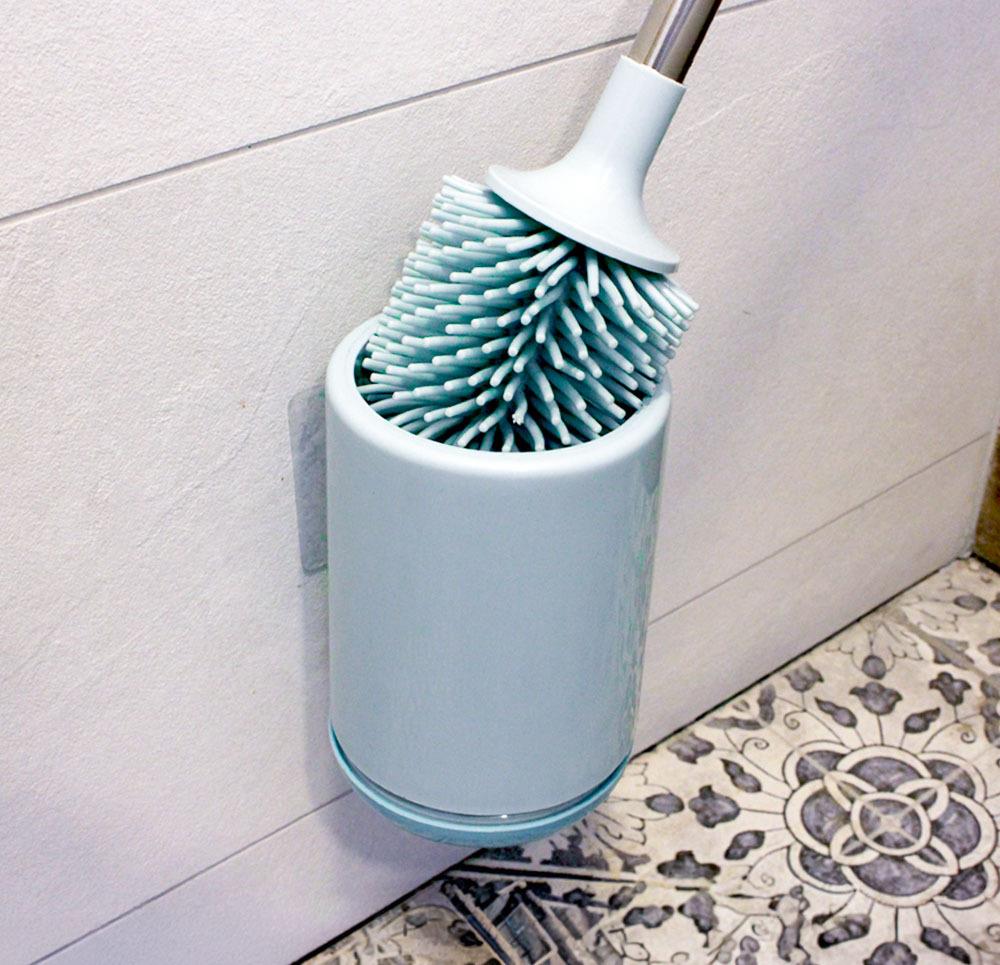 Mamy dla Ciebie rewolucyjną szczotkę do WC! Dzięki gumowemu materiałowi doskonale usuniesz wszelkie zabrudzenia. Nie rozwijają się na niej pleśnie ani bakterie, ponieważ jest łatwa do mycia i szybko wysycha. Uchwyt możesz przymocować do płytek za pomocą samoprzylepnej naklejki.