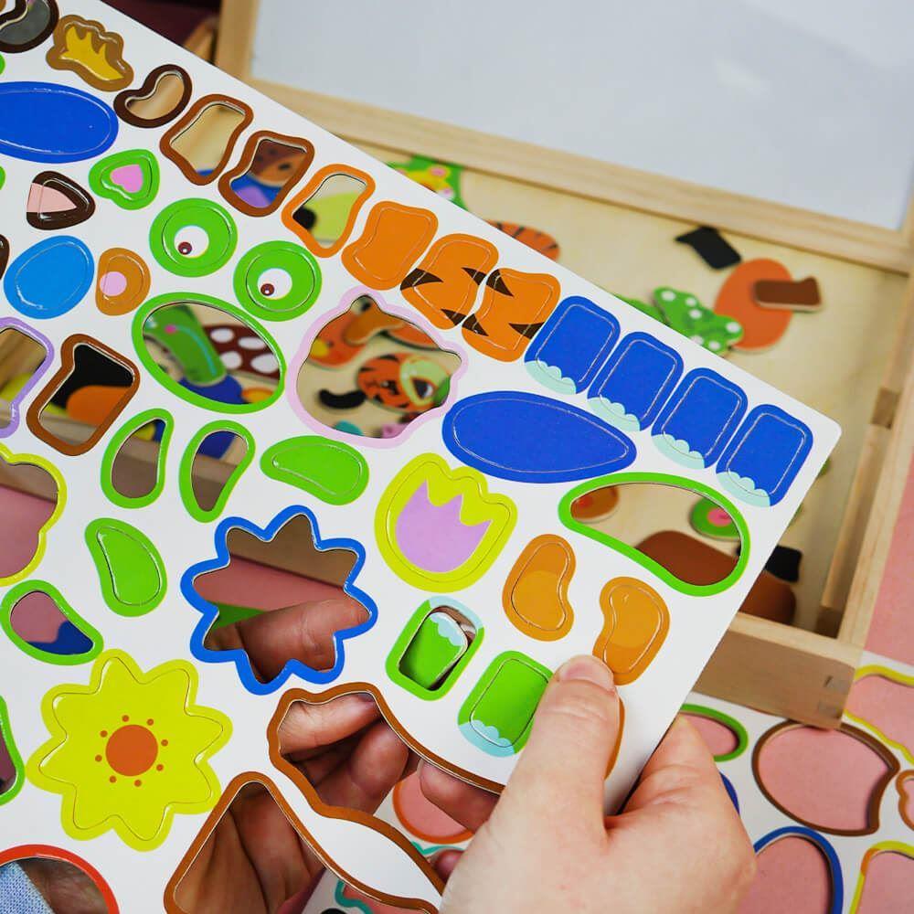 możliwość rysowania markerem i kredą, możliwość wyboru elementów układanki - rozwija wyobraźnię
