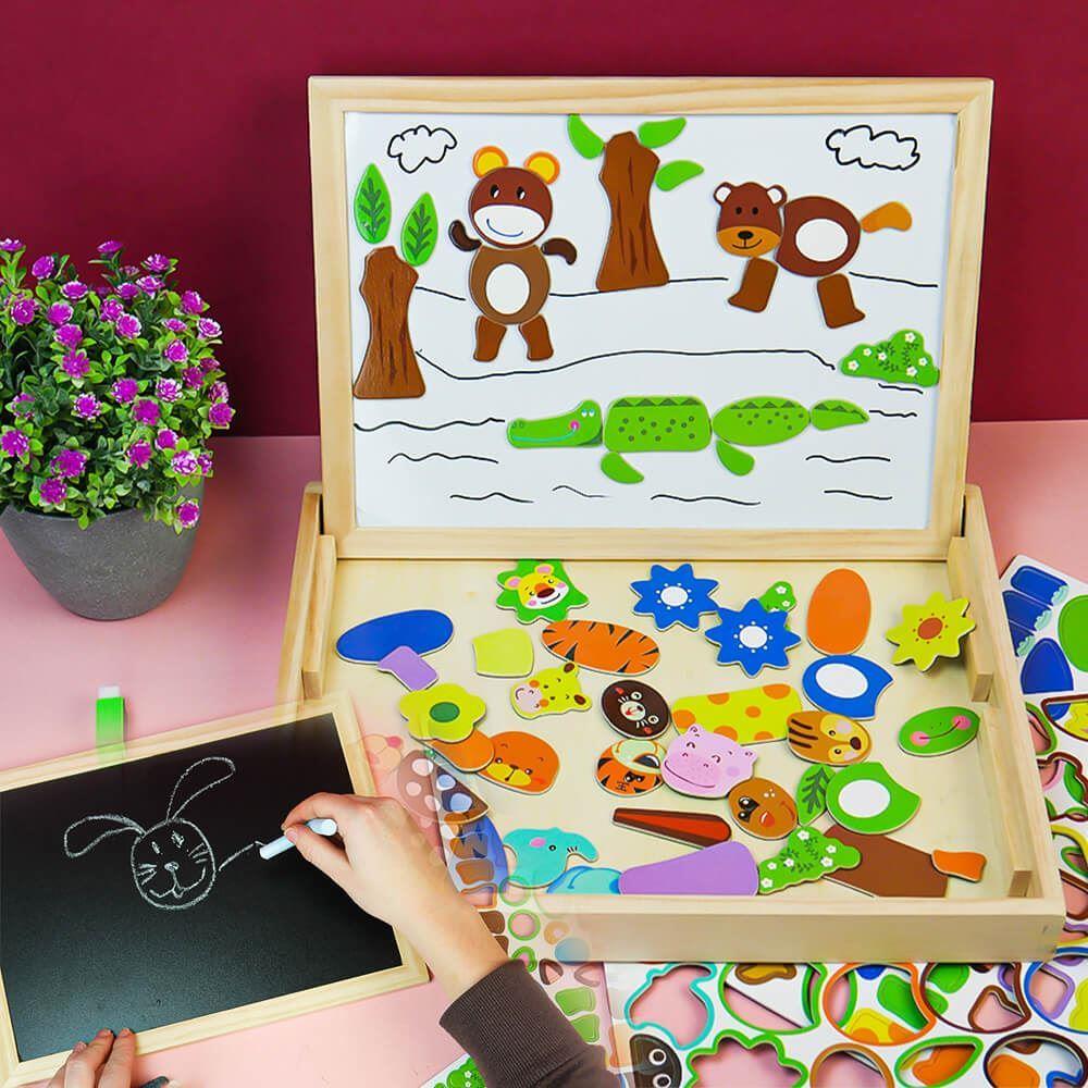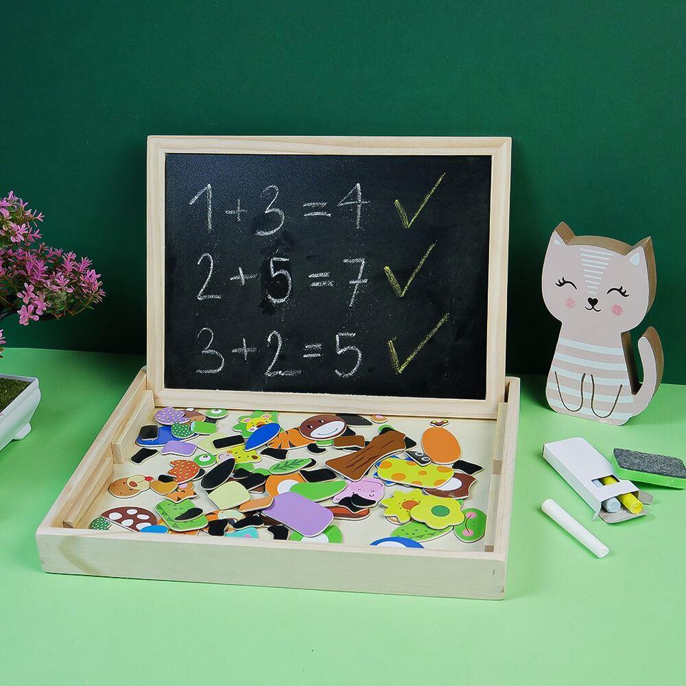 Tę tablicę polubi każde dziecko, niezależnie czy to dziewczynka, czy chłopiec. Tablica doskonale rozwija dziecięcą wyobraźnię i kreatywność, a poza tym nie musi służyć wyłącznie jako zabawka, może być również dyskretną pomocą edukacyjną. Napisz na tablicy zadanie matematyczne i pozwól dziecku je rozwiązać. Albo wymyśl jakieś słowo i poproś dziecko, by uzupełniło brakujące literki. Wierzymy, że tablica znajdzie wiele okazji do użycia.