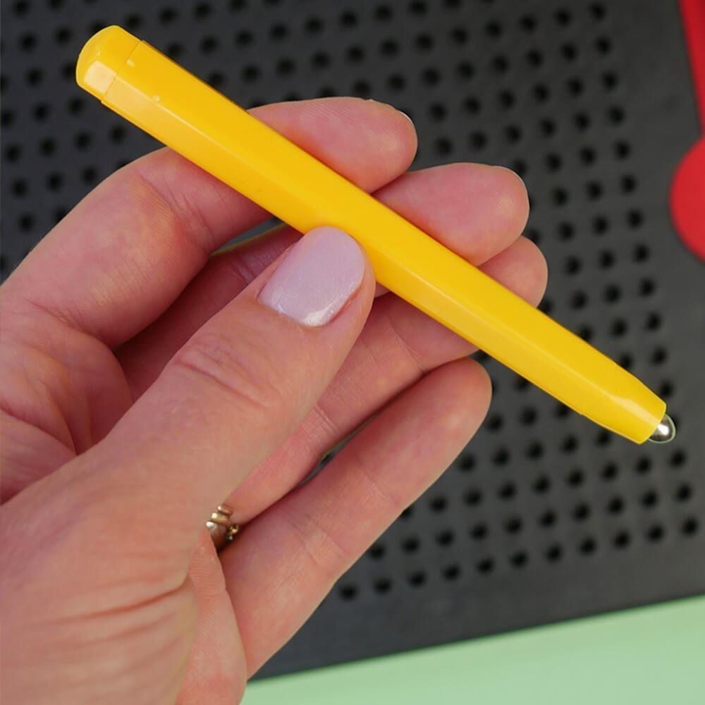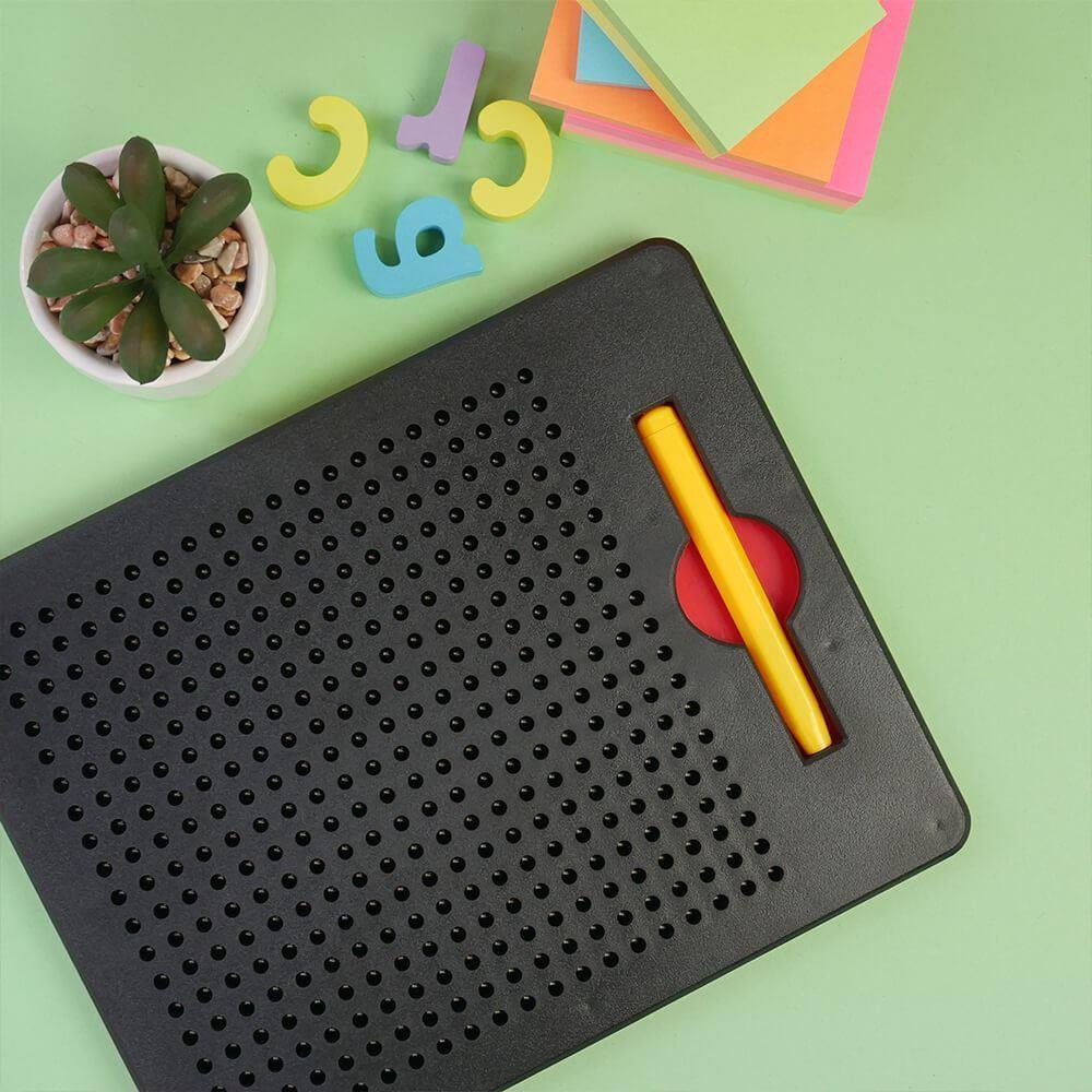 Magnetyczna tablica do rysowania to sprytna rzecz, która zajmie dzieci na długie godziny i jednocześnie wspiera ich kreatywność. Wystarczy wziąć dołączony pisak i zacząć czarować – gdy tylko przejedziesz nim po tablicy, wyskoczą magnetyczne kulki i narysują twój obrazek. Dzieci łatwo opanują pisanie liter, cyfr lub po prostu bawią się kształtami i obrazkami.