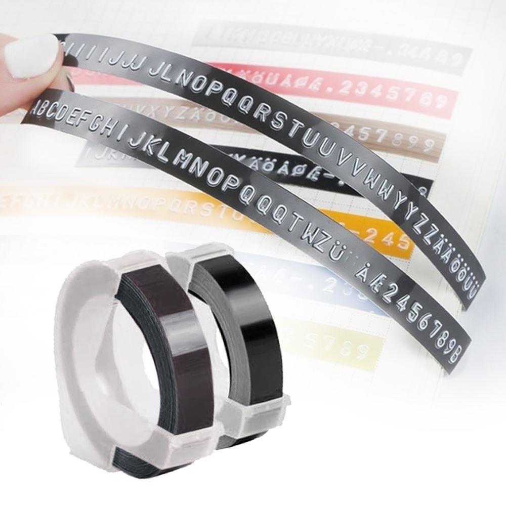 Na czarnej taśmie wytłoczysz wybrane przez siebie litery lub cyfry. Taśmę wystarczy wsunąć do etykieciarki. Gotowy napis etykieciarka sama przycina i jest on od razu gotowy do przyklejenia. Trójwymiarowe napisy na czarnych etykietach wyglądają nowocześnie i są praktycznym rozwiązaniem.