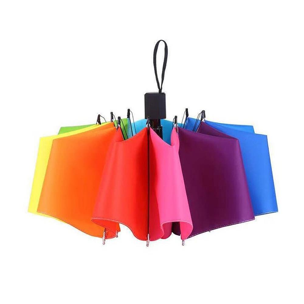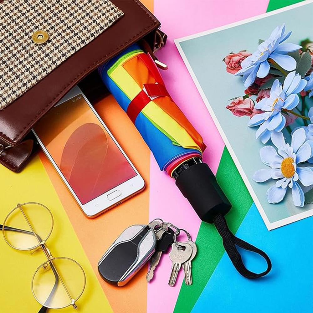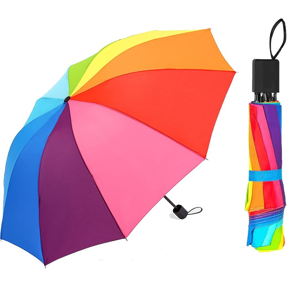 Z tęczową składaną parasolką żadna ulewa nie będzie już nieprzyjemna! Jej radosny, kolorowy design wniesie optymizm i uśmiech nawet w najbardziej ponure dni. Dzięki praktycznej, składanej konstrukcji z łatwością zmieścisz ją w torebce lub plecaku, więc zawsze będziesz mieć ją pod ręką.