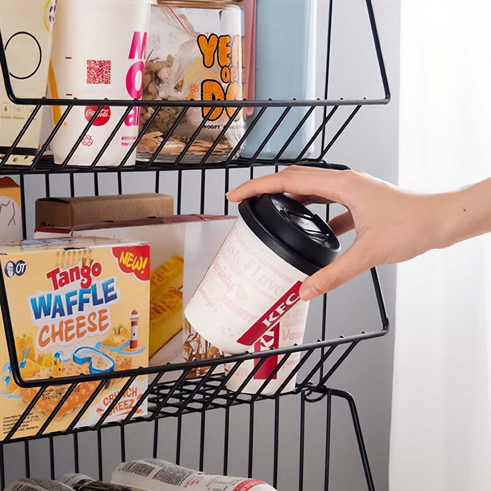 Otwarta, druciana konstrukcja umożliwia również cyrkulację powietrza. Ten organizer stanie się nieocenionym pomocnikiem w każdym domu.