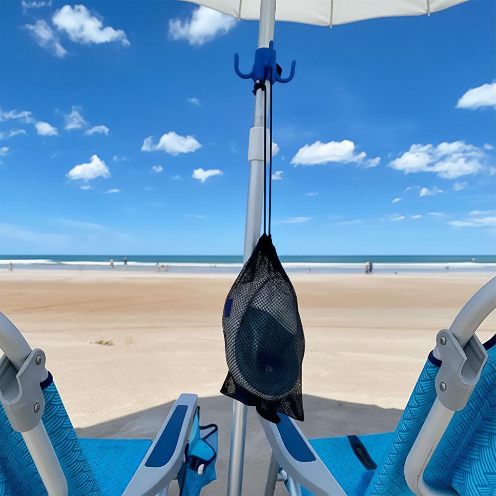 Uchwyt na parasol z 4 haczykami to praktyczne rozwiązanie, które pomoże utrzymać porządek wokół leżaka również na plaży. Koniec z ręcznikami w piasku, mokrymi torbami na ziemi czy okularami i kluczami zaginionymi w kocu – wystarczy zawiesić je na haczykach, aby mieć wszystko pod ręką i w porządku.