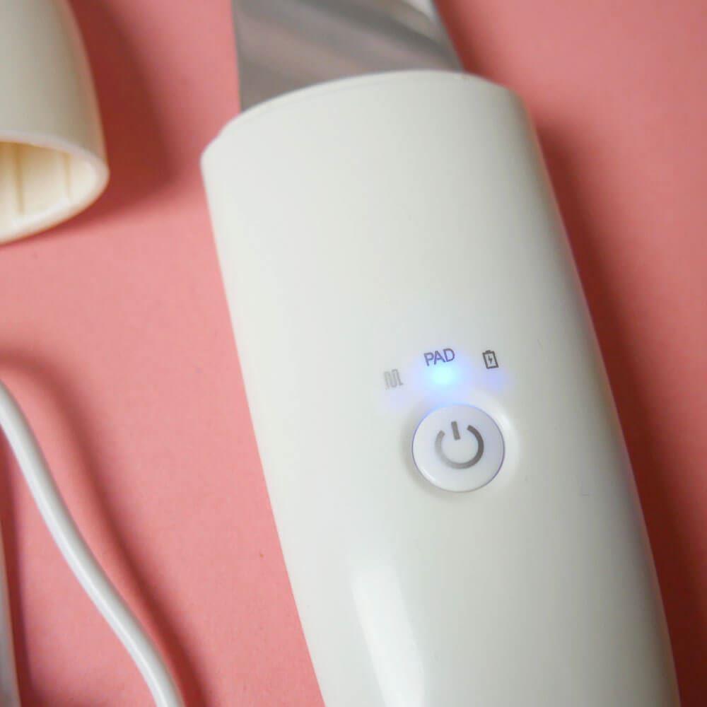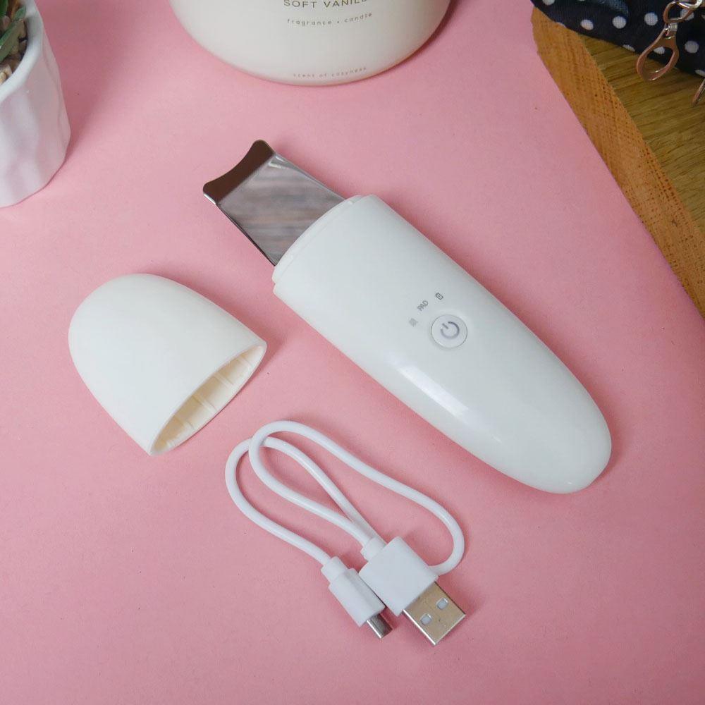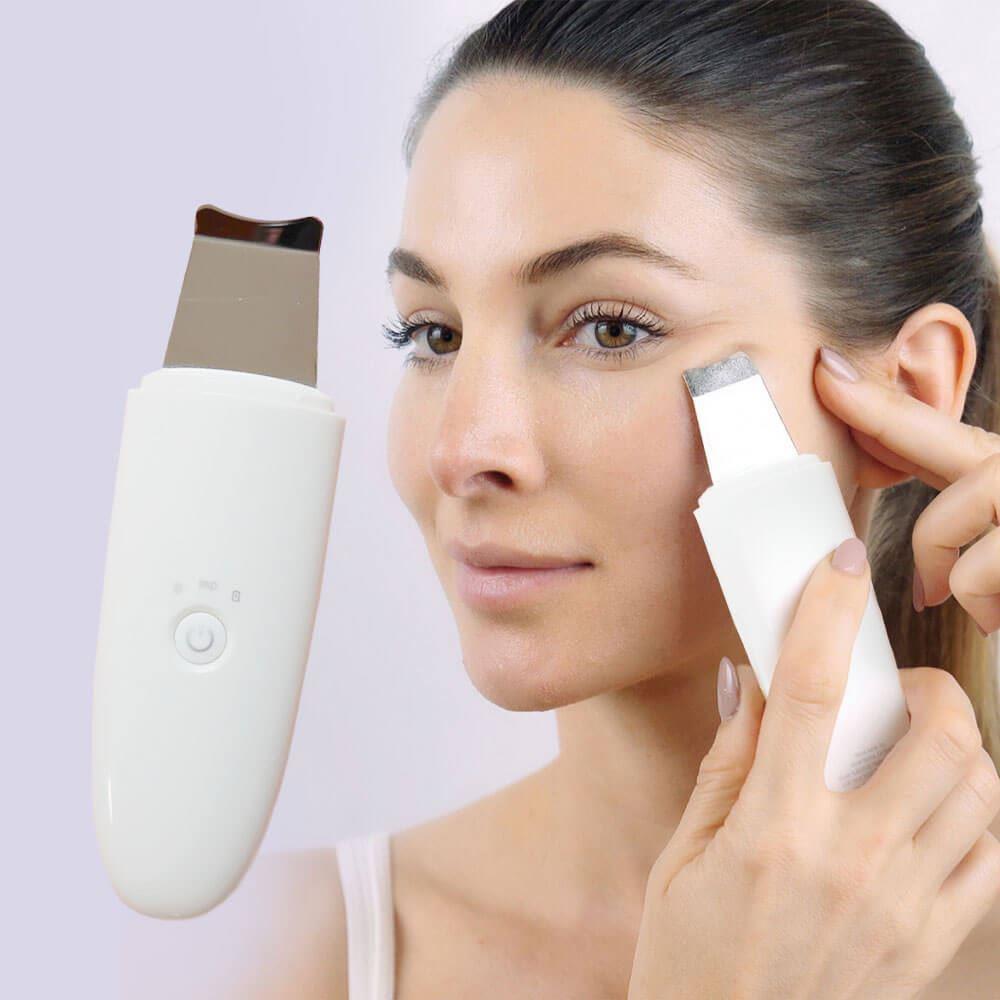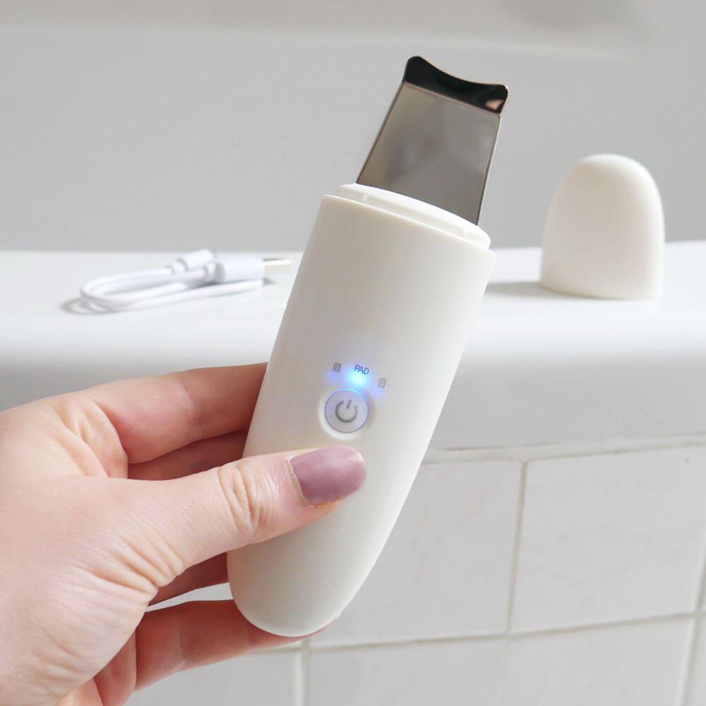 Szpatułka ultradźwiękowa nadaje się do każdego typu cery. Jej użycie jest bardzo proste. Po demakijażu wystarczy zwilżyć twarz i przyłożyć szpatułkę pod kątem 45 stopni. Następnie delikatnymi ruchami oczyścić całą twarz. Za pomocą przycisku możesz przełączać się między 2 trybami pracy. Po rozładowaniu urządzenie ładuje się łatwo za pomocą kabla USB.