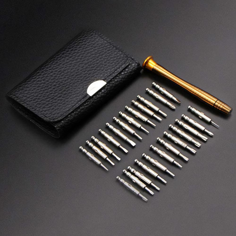 W zestawie znajdziesz 24 śrubokręty, takie jak np. krzyżakowe, płaskie, torx itp. Do tego otrzymujesz jeszcze uchwyt, na który nakładasz śrubokręt, którego w danej chwili i przy konkretnym problemie będziesz potrzebować. Z tym praktycznym zestawem mini śrubokrętów drobna naprawa pójdzie Ci łatwo!