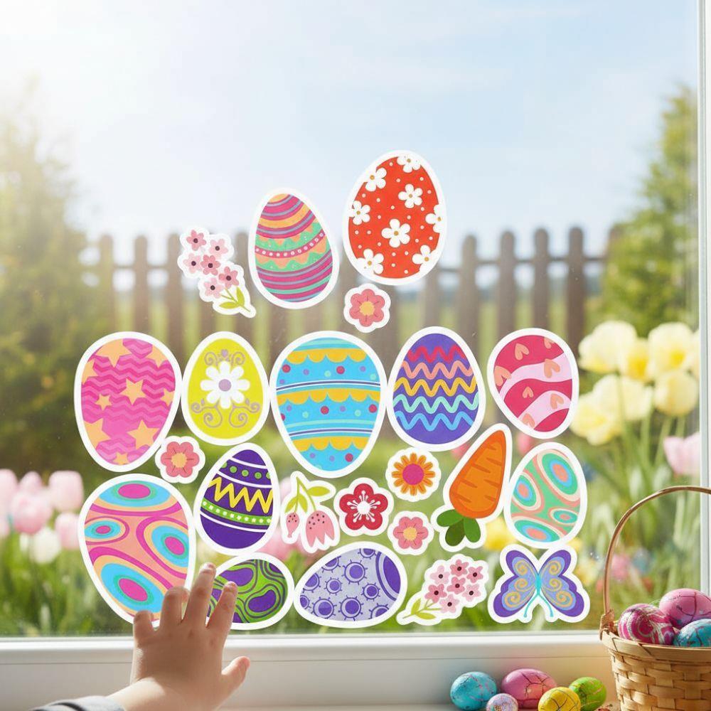 Świetnie sprawdzą się na oknach, lustrach oraz innych gładkich, szklanych powierzchniach. Idealne do domów, pokoi dziecięcych, przedszkoli, szkół czy witryn sklepowych. Prosty sposób na wprowadzenie wielkanocnego klimatu bez bałaganu.