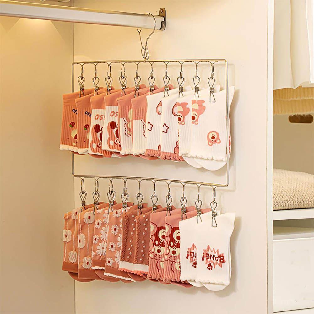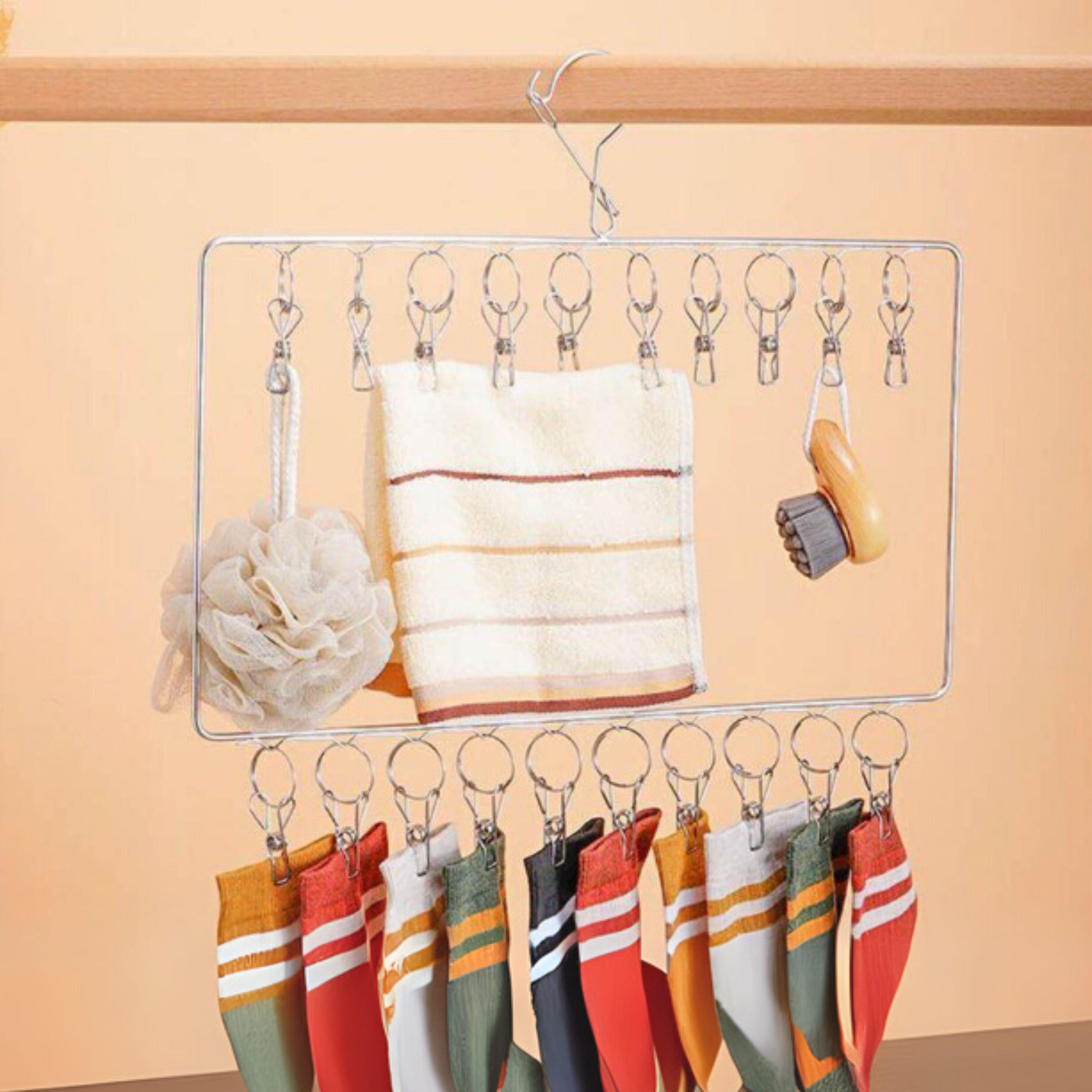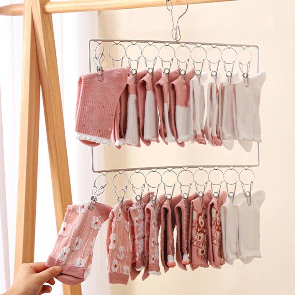 Miłośnicy porządku i wszelkiego rodzaju organizerów domowych, zwróćcie uwagę! Na pewno wiecie, że uporządkowana szafa to podstawa codziennego ubierania się. Dlatego w przechowywaniu warto, aby wszystko miało swoje miejsce, a dokładniej przegródkę lub wieszak – i właśnie taki specjalny mamy dla was. To proste, a jednak absolutnie wspaniałe wieszak składa się z dwóch rzędów klipsów, na które można powiesić nie tylko skarpetki, ale także inne drobne pranie, bądź na przykład krawaty. Oszczędzicie przestrzeń w szufladzie i również chaos, który może powstać, gdy szukacie konkretnego elementu i nieco brakuje wam czasu. Możecie go również użyć do suszenia prania, gdy nie macie zbyt wiele miejsca na suszarce lub sznurku.