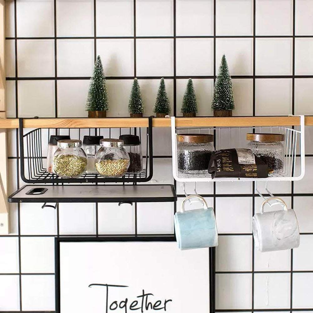Wiszący metalowy koszyk zaoszczędzi miejsce w każdym pomieszczeniu i zapewni porządek w rzeczach. Nadaje się do kuchni na naczynia, deski do krojenia czy papierowe ręczniki. W łazience wykorzystasz go na ręczniki, a w garderobie na ubrania. Na haczykach powiesisz krawaty, ściereczki lub małe torebki. Praktyczny organizer posłuży także w salonie na książki i inne drobiazgi.