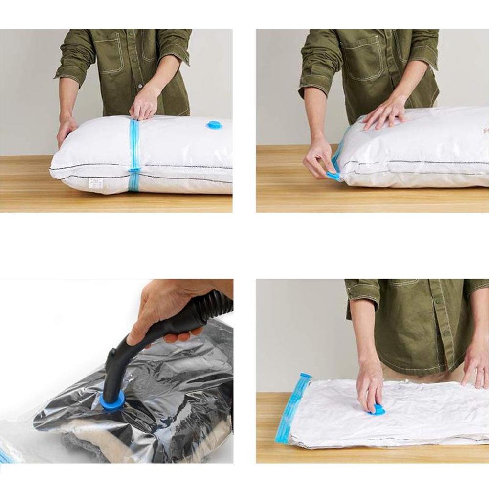 Worki zostały specjalnie zaprojektowane tak, aby zajmowały nawet o 75% mniej miejsca. Są przeznaczone do przechowywania ubrań, koców, poduszek, pluszaków czy prześcieradeł. Zasada działania jest prosta. Włóż rzeczy do worka, a następnie za pomocą odkurzacza odessij powietrze i zamknij worek suwakiem. Dzięki temu do środka nie dostanie się kurz, mole, rzeczy nie zawilgną ani nie zaczną nieprzyjemnie pachnieć. Co więcej? Worki nie są jednorazowe – można ich używać wielokrotnie.