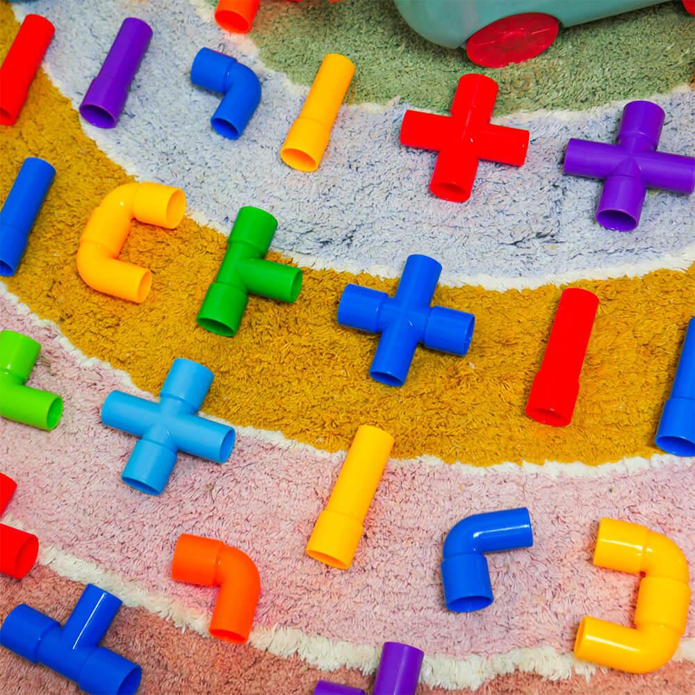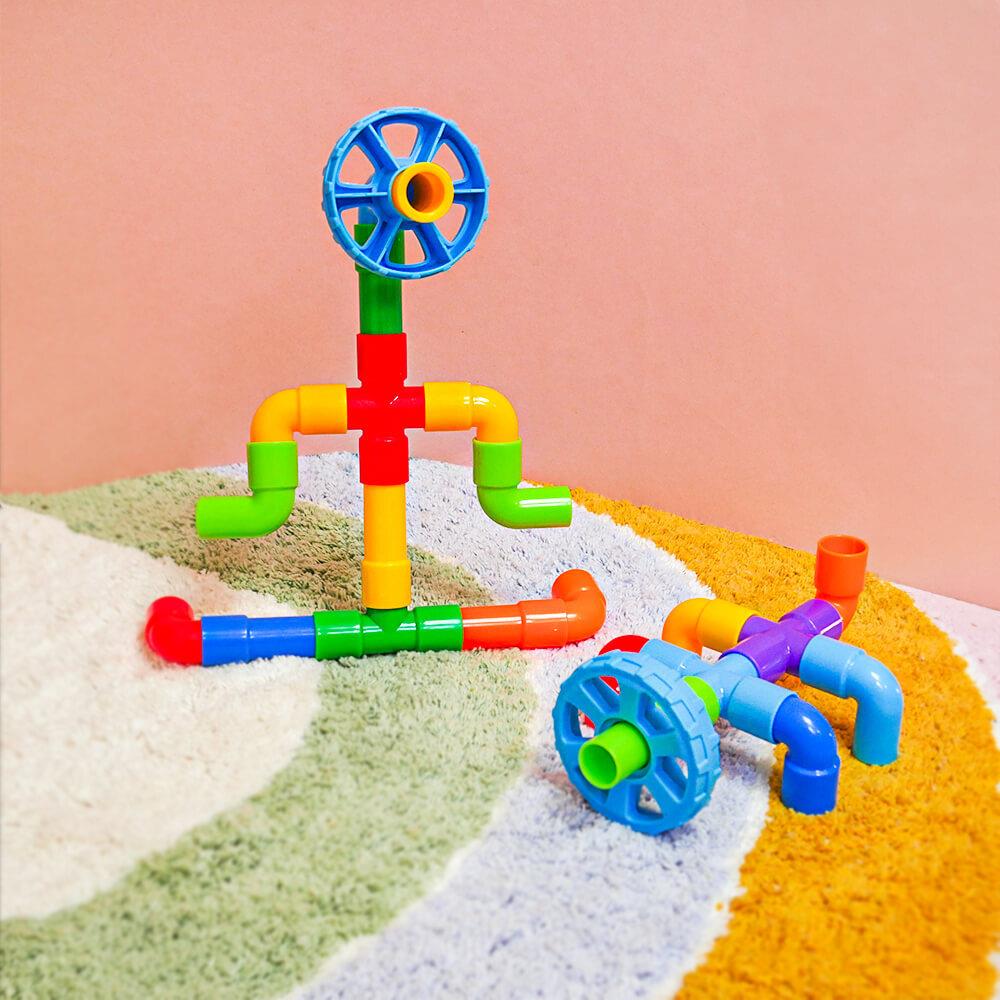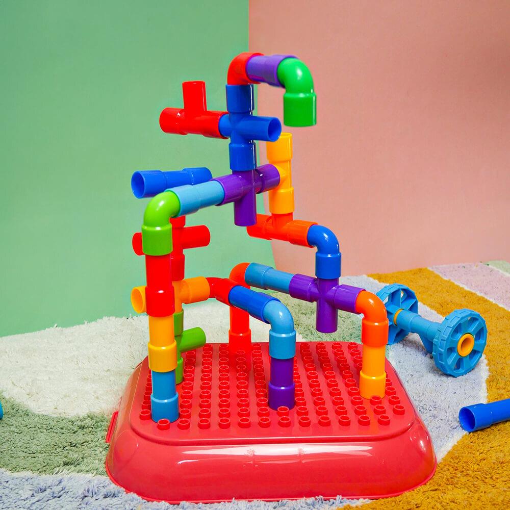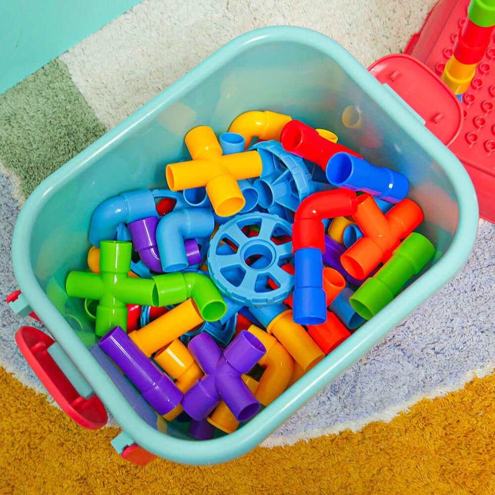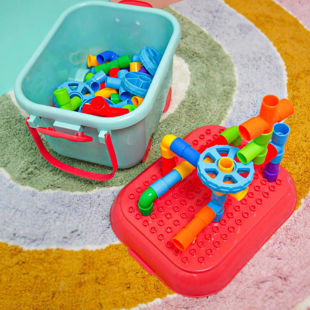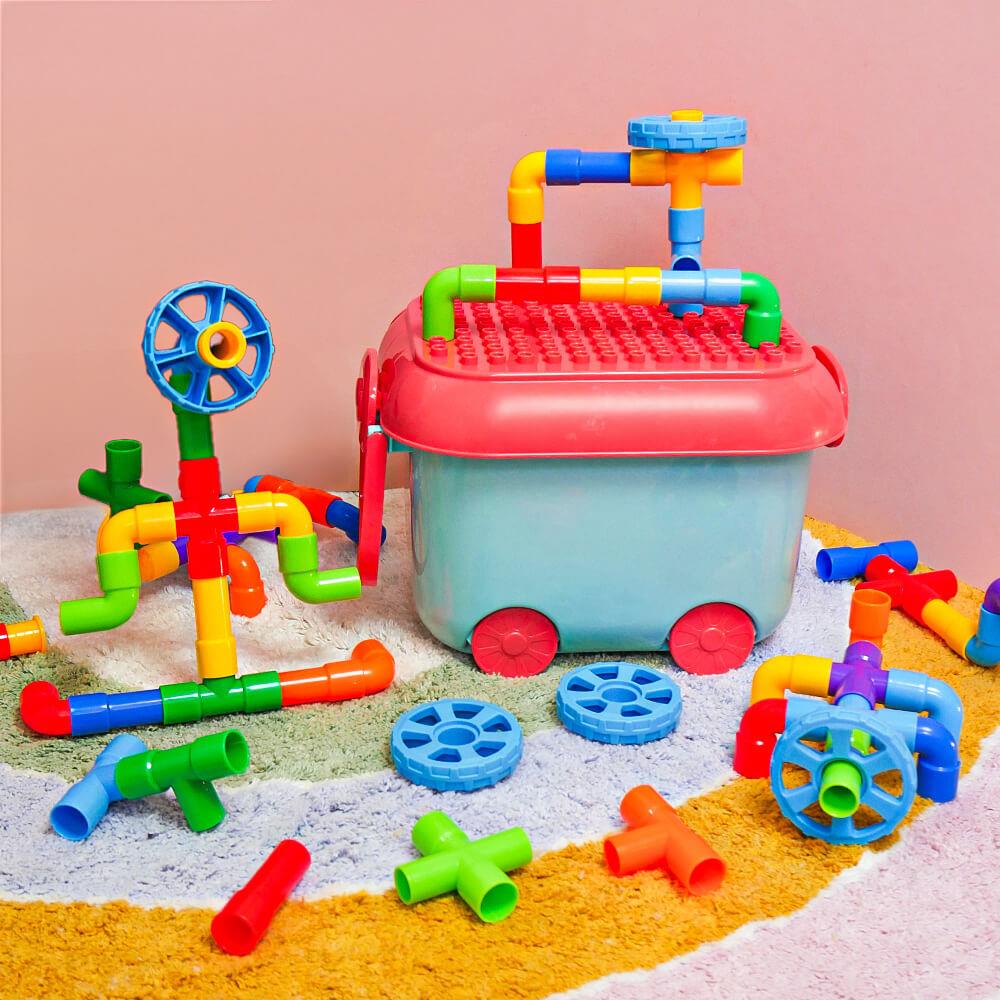 Zestaw wspiera kreatywność, wyobraźnię i rozwój małej motoryki w zabawny sposób. Dzieci mogą spróbować budować zgodnie z szablonem lub tworzyć według własnej wyobraźni. Możliwości są nieograniczone — od samochodzików po fantastyczne maszyny i roboty. Dzięki zabawie zespołowej dzieci uczą się współpracować, dzielić się i rozwijać ducha zespołowego. Po zabawie wszystko można łatwo schować z powrotem do wózka, a porządek jest zachowany w mgnieniu oka.