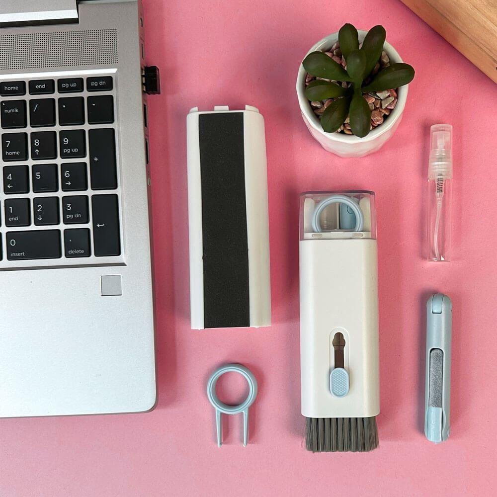 W wielofunkcyjnym zestawie znajdziesz szczoteczkę do klawiatury, czyścik do ekranu, pojemniczek na wodę, narzędzie do zdejmowania klawiszy z klawiatury oraz trzy szczoteczki - jedną do czyszczenia schowka słuchawek, drugą do czyszczenia końcówek dousznych, a trzecią do czyszczenia powierzchni słuchawek. Wszystko, czego potrzebujesz do utrzymania czystości swoich urządzeń, w jednym zestawie.