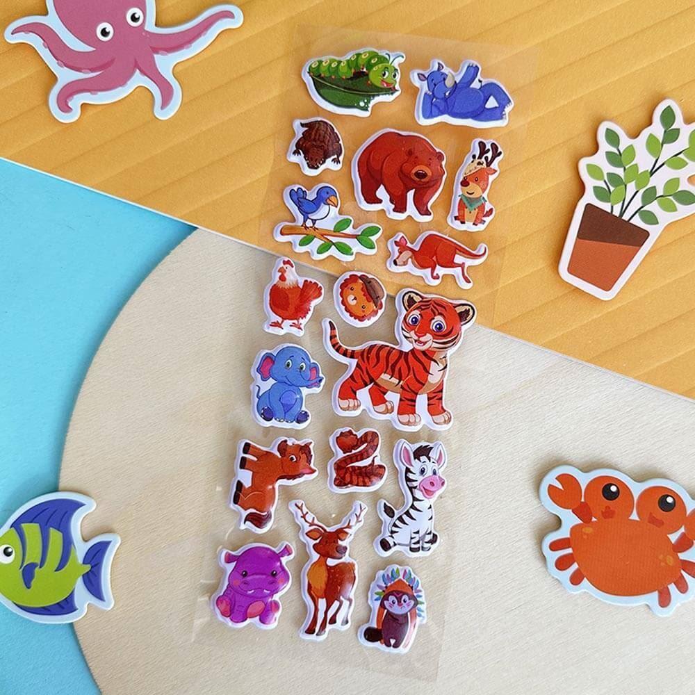 Wypukłe naklejki ze zwierzątkami są przeznaczone dla każdego dziecka, które kocha tworzyć i bawić się. Dzieci mogą wymyślać własne historie, ozdabiać zeszyty szkolne, pamiętniki lub prezenty dla bliskich. Każda naklejka przyciąga uwagę efektem 3D, ponieważ jest lekko podniesiona.