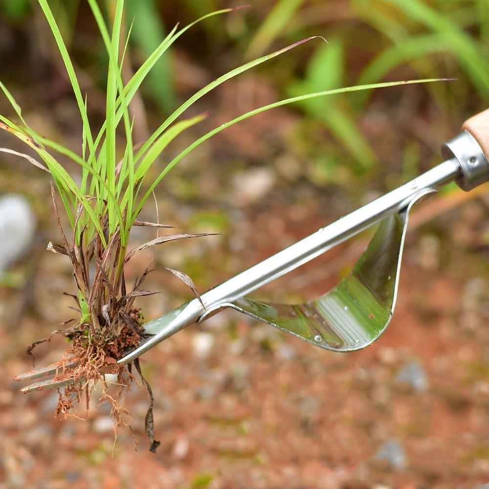 Narzędzie wkłada się do gleby tak, aby chwast znalazł się między zębami. W międzyczasie należy przytrzymać roślinę ręką i po prostu docisnąć kołyskę do ziemi, aby wyrwać chwast i jego korzenie. Kołyska (zakrzywiona metalowa podstawa), która działa na zasadzie dźwigni, sprawia, że wyrywanie chwastów jest dziecinnie proste.