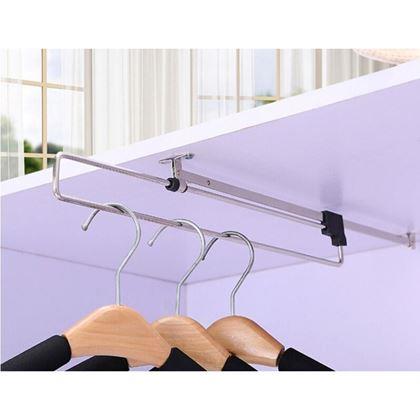 Twój dom jest pełny prowizorycznych rozwiązań, a wszędzie panuje chaos? W takim razie nie ma nad czym myśleć! Ten wieszak wysuwa się z szafy, aby dzięki czemu uzyskasz lepszy dostęp do zawieszonych ubrań. Będziesz bardzo zadowolona z wysokiej jakości wykonania tego pomocnika. Długość wieszaka podawana jest jako długość jego podstawy. Wsuwana część wieszaka nie wsuwa się całkowicie w podstawę, tworząc miejsce na uchwyt.