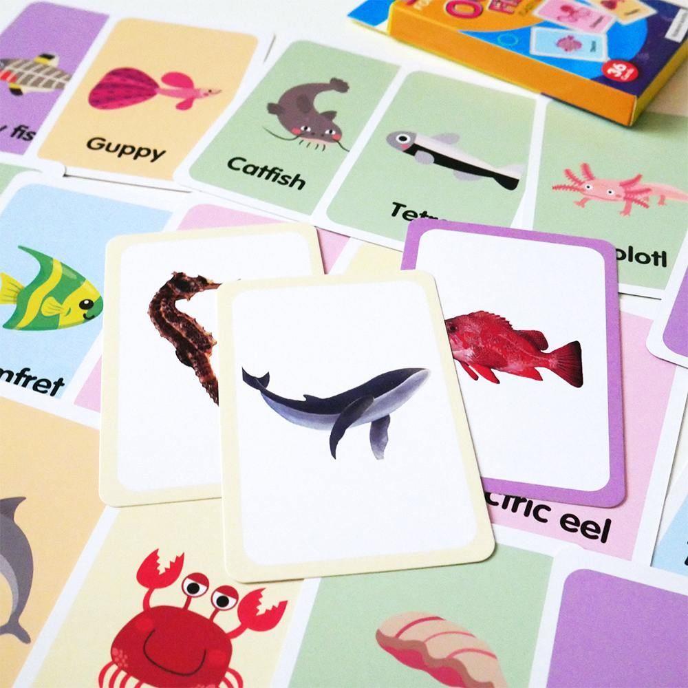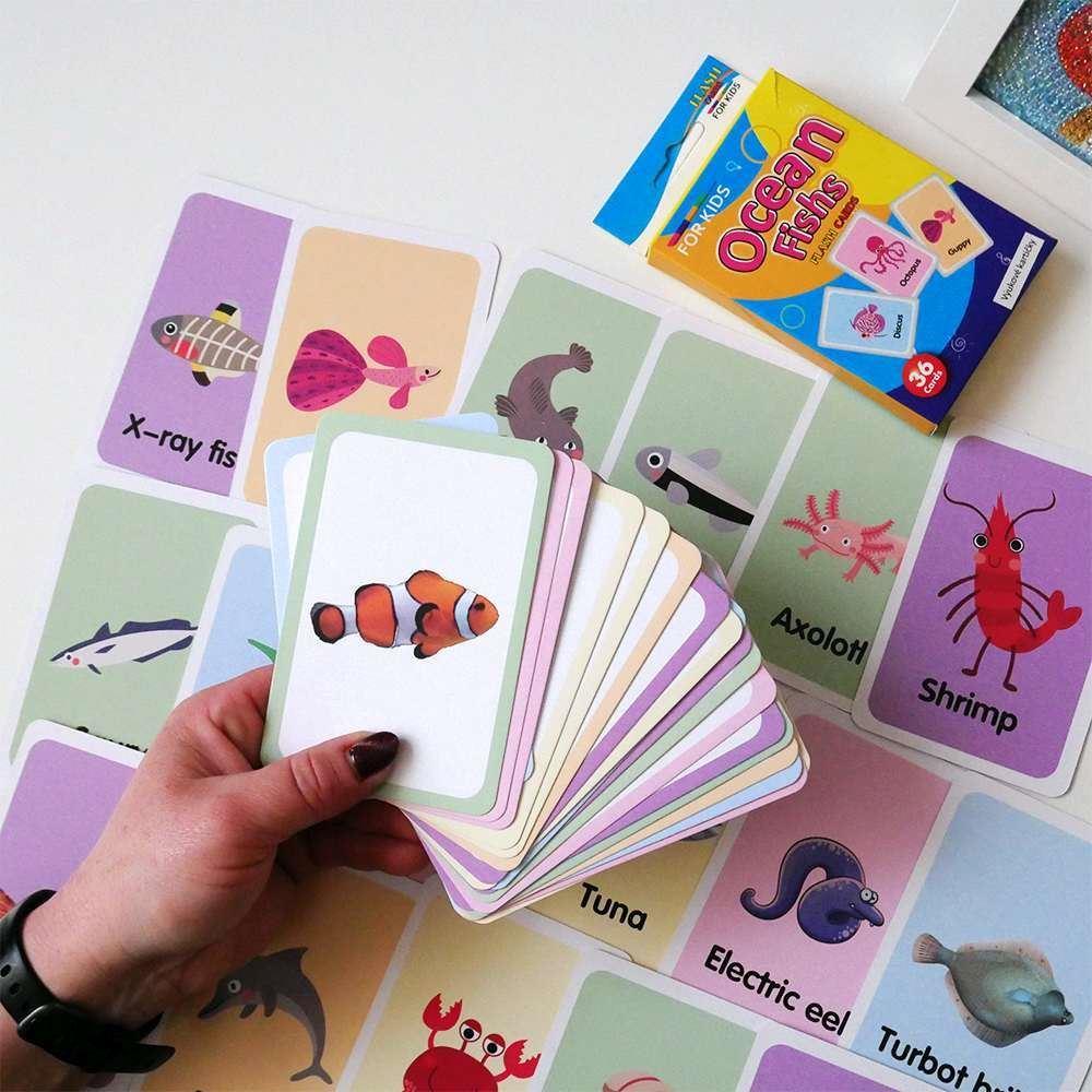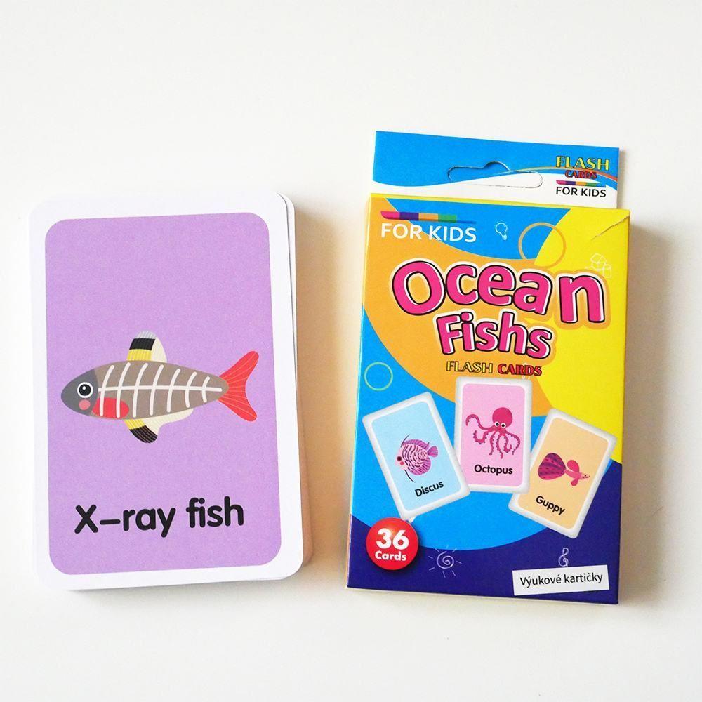 Zestaw 36 edukacyjnych fiszek w języku angielskim - morskie zwierzątka