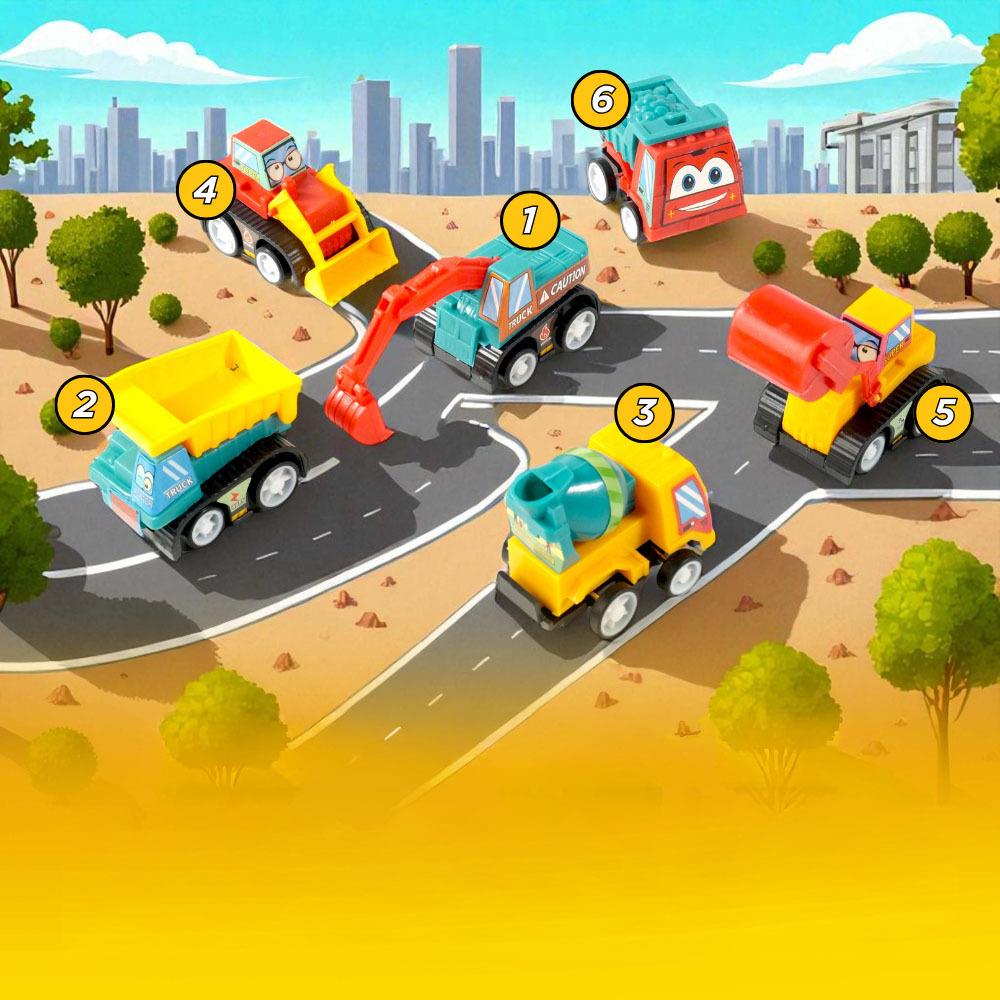 • Sześć kolorowych maszyn budowlanych zapewni dzieciom mnóstwo zabawy