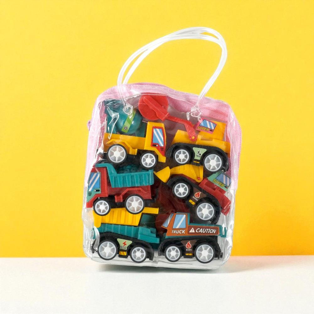 Zestaw 6 nakręcanych samochodzików w przezroczystej torbie