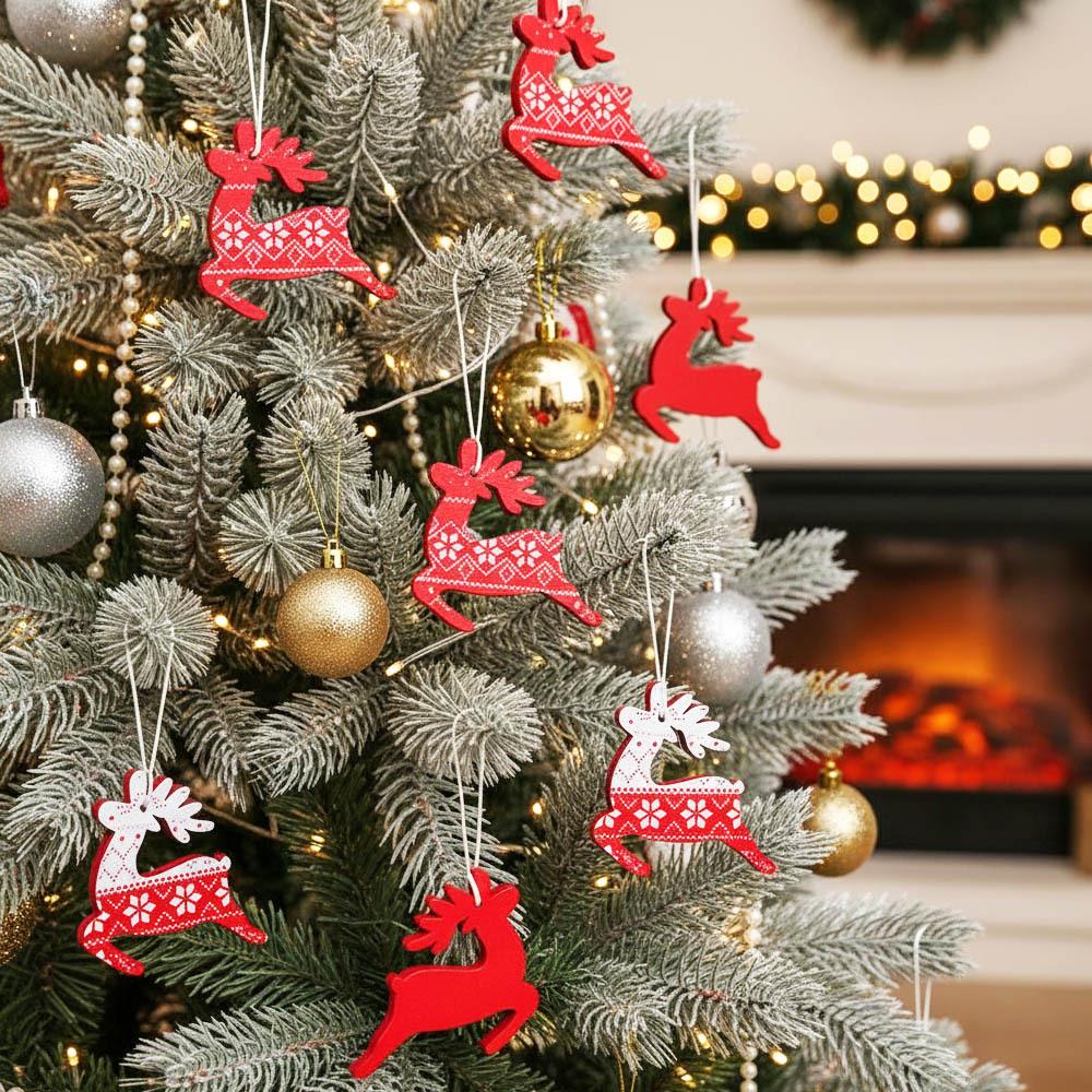 Zestaw drewnianych ozdób 12 szt. - renifery