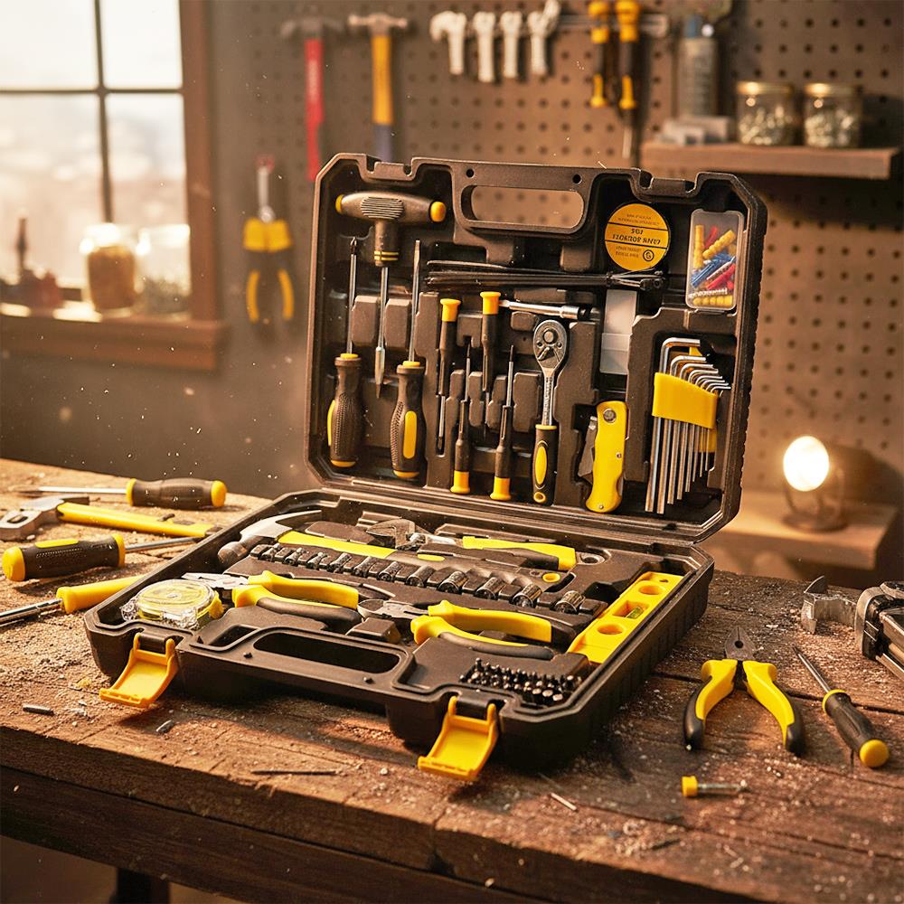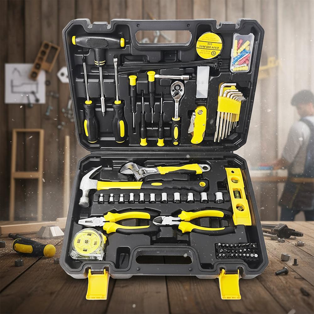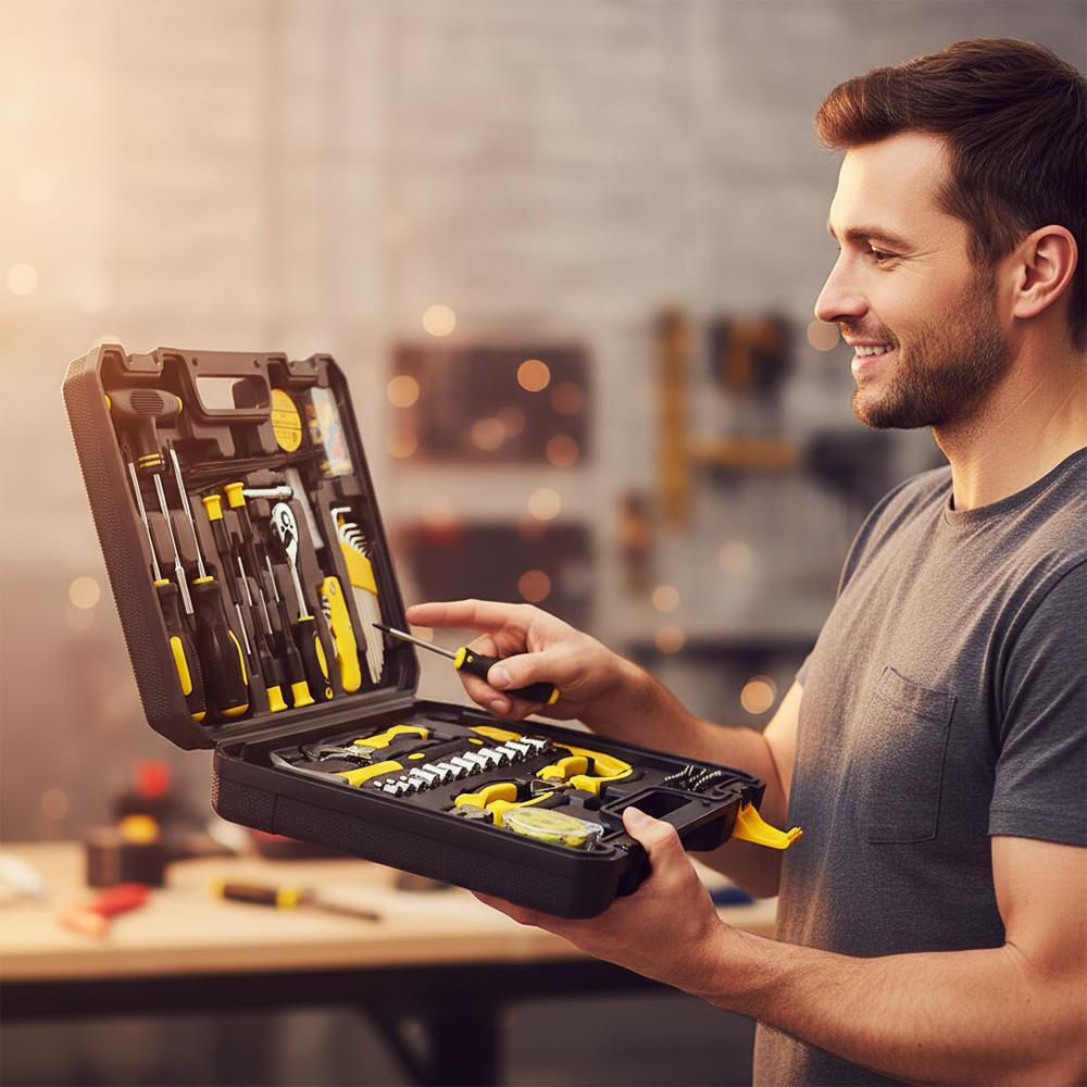 Ten uniwersalny zestaw narzędzi to marzenie każdego mężczyzny, który chce mieć wszystko pod ręką zawsze, gdy trzeba coś dokręcić, przywiercić, naprawić lub zmontować. Solidna walizka kryje dziesiątki praktycznych narzędzi przejrzyście ułożonych, aby praca przebiegała szybko i efektywnie. Od śrubokrętów i szczypiec, przez grzechotkę z nasadkami, aż po poziomicę czy tester baterii – tutaj niczego nie brakuje.