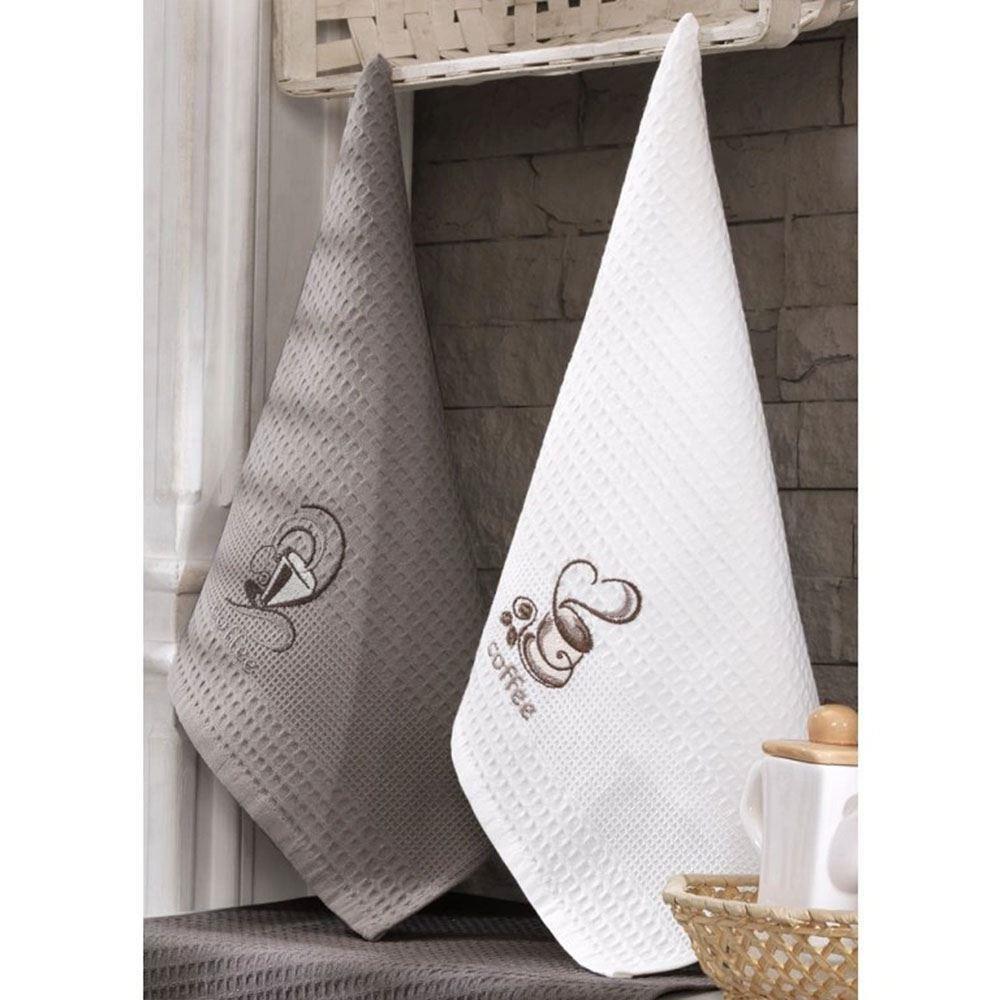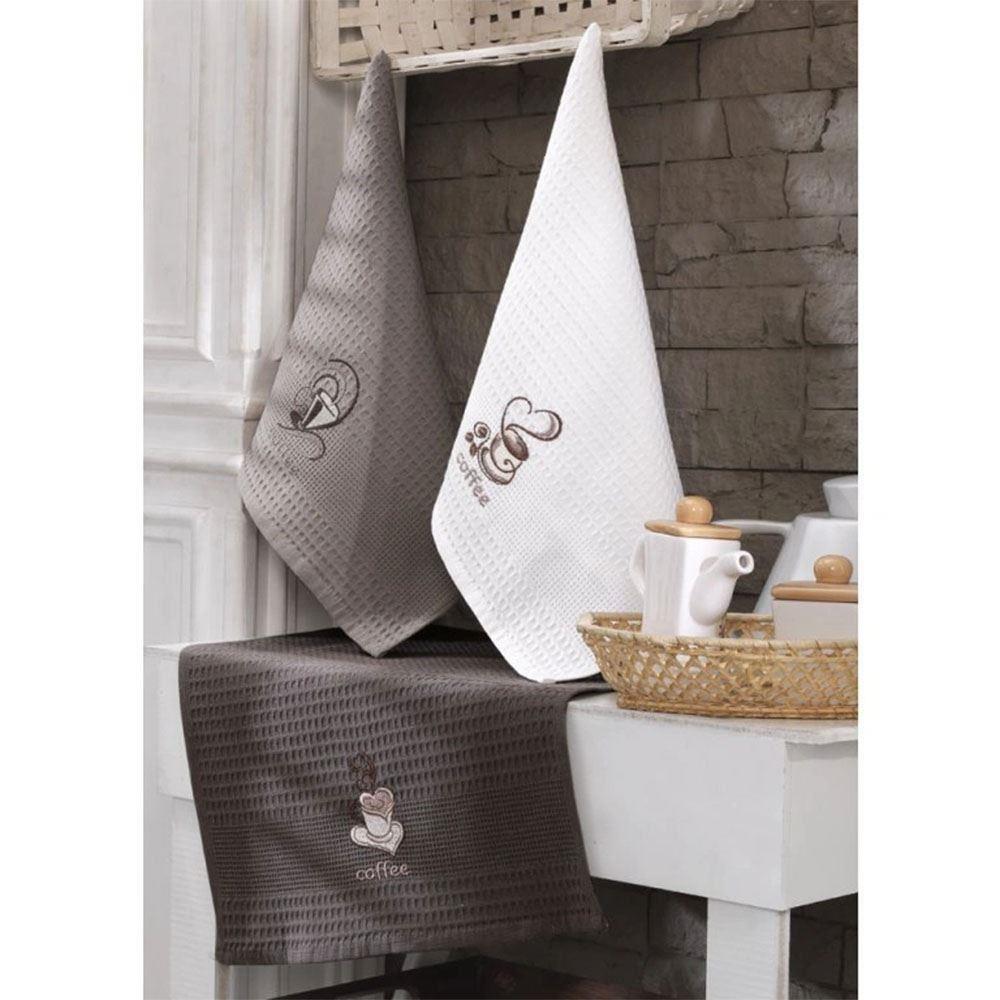 Ręczniki waflowe są idealnym dodatkiem do każdej kuchni, a ten zestaw jest idealnym prezentem dla miłośników kawy. Wykonane w 100% z bawełny, co gwarantuje ich wysoką chłonność i długą żywotność. Wzór waflowy z dekoracją filiżanek kawy i napisami "coffee" nadaje kuchni elegancki i stylowy wygląd.