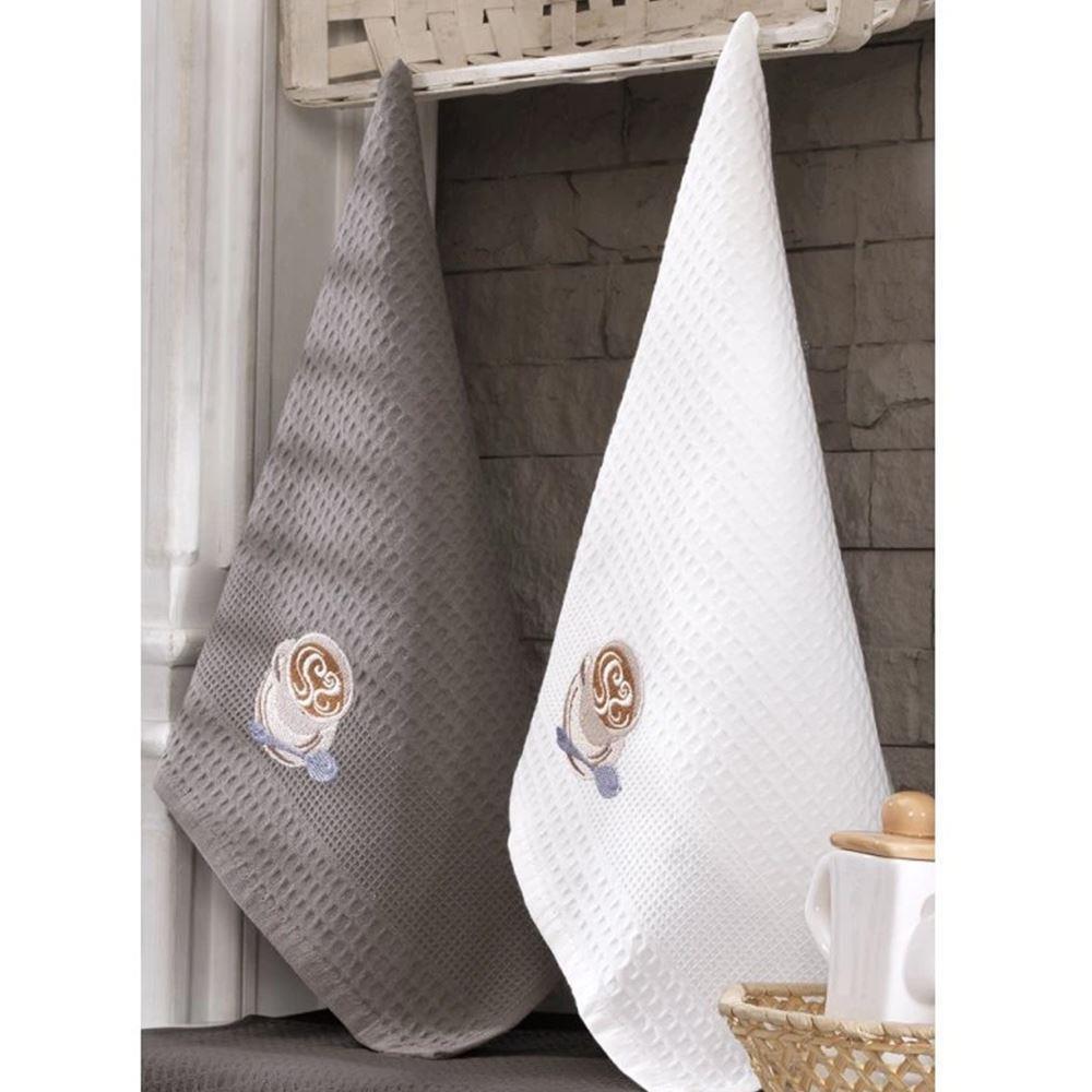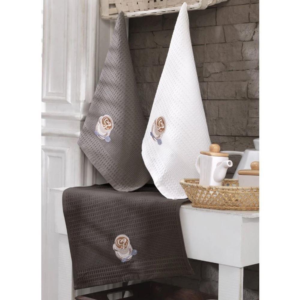 Waflowe ściereczki są idealnym dodatkiem do każdej kuchni, a ten zestaw to doskonały prezent dla miłośników kawy. Wykonane są w 100% z bawełny, co gwarantuje ich wysoką chłonność i długą żywotność. Waflowy wzór z motywem filiżanek do kawy oraz napisami "coffee" nadaje kuchni elegancki i stylowy wygląd.