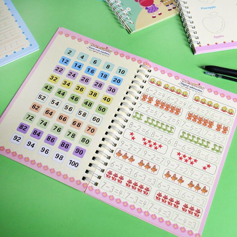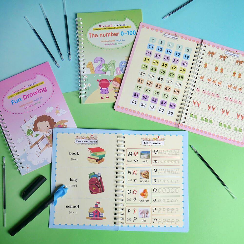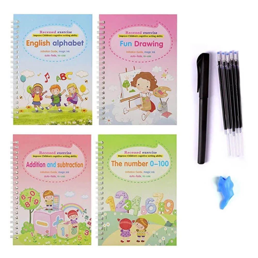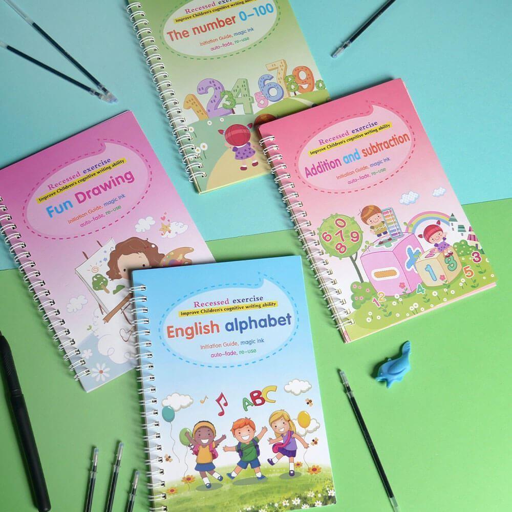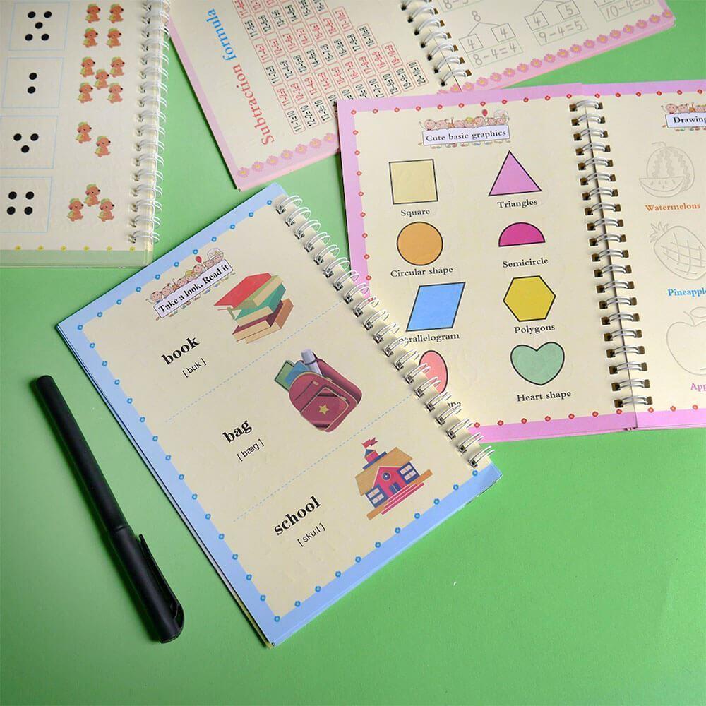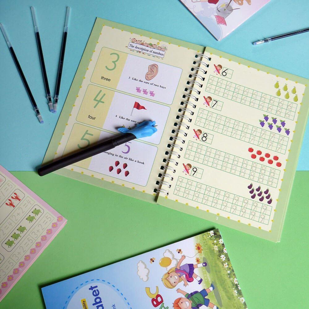Czas leci, a w domu rośnie Ci mały przedszkolak? Dołącz do nas i ucz się przez zabawę – poćwicz z dzieckiem podstawy pisania, rysowania i liczenia, zanim pójdzie do pierwszej klasy! Zestaw 4 oryginalnych zeszytów edukacyjnych zachwyci każdego rodzica i dziecko. W komplecie znajduje się oryginalny długopis z magicznym, znikającym tuszem oraz specjalna nakładka ułatwiająca prawidłowy chwyt. Dzięki znikającemu tuszowi zeszyty mogą być używane wielokrotnie.